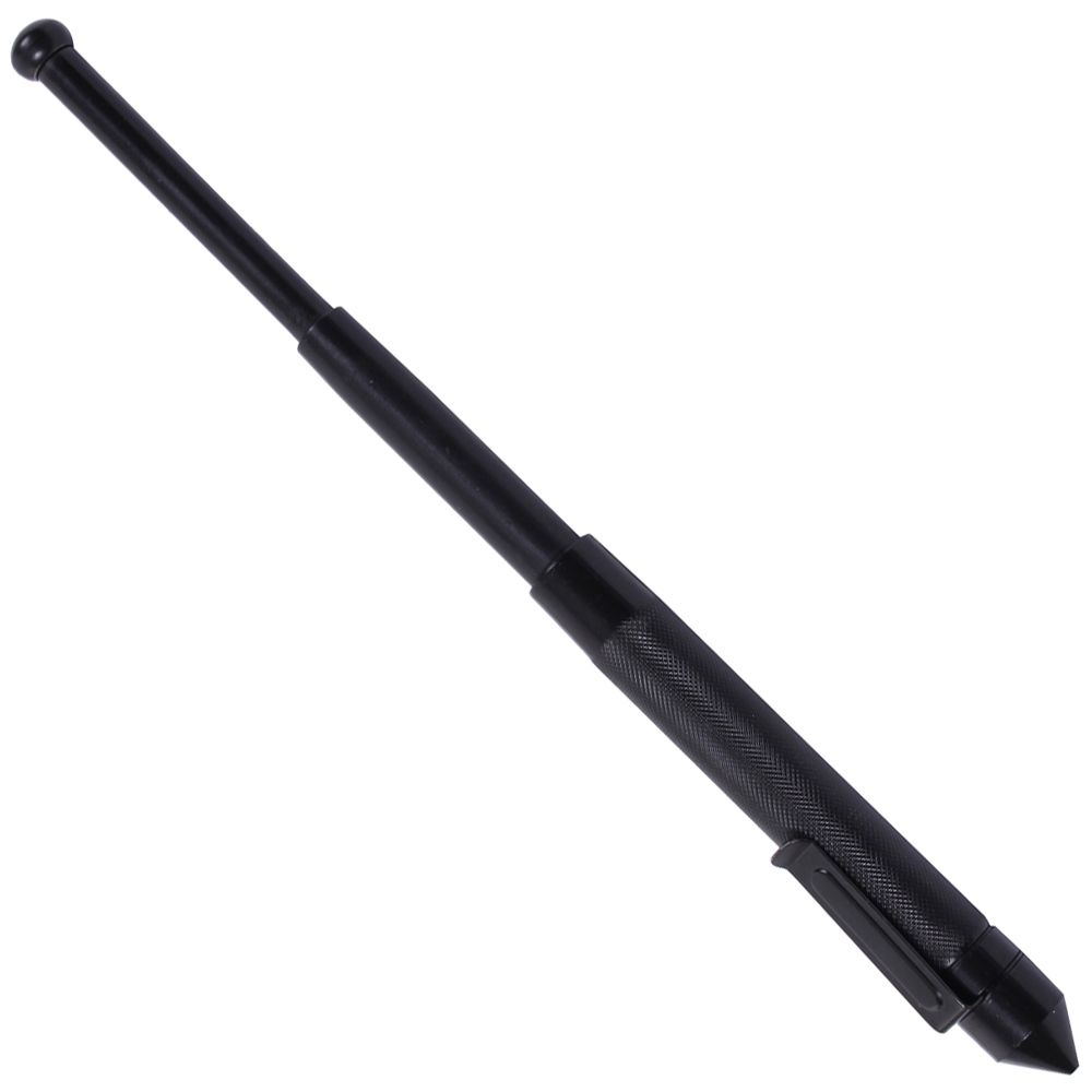 Ultra Force's Expandable Baton with Pocket Clip measures 13.5" long and features black steel tubing, glass breaker and pocket clip. Great for law enforcement or personal safety.