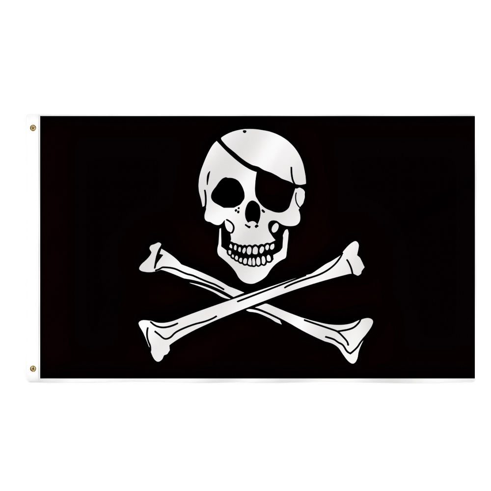 Set sail for adventure with the Pirate Jolly Rogers Flag, the ultimate symbol of pirate spirit and rebellion. Made from strong polyester fabric, this flag features the classic skull and crossbones design in vivid, long-lasting print. Designed for indoor or outdoor use, it has double-stitched edges for added durability and two metal grommets for easy, secure mounting. Fly it proudly at themed parties, events, or as bold decoration in your space.