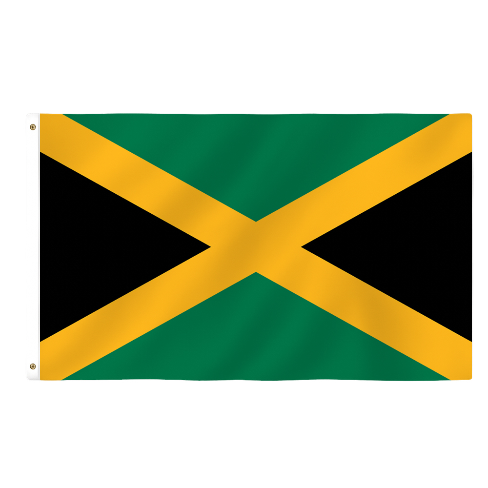 Fly your colors proudly with the Jamaica Flag, showcasing the bold black, green, and gold cross design. This flag is made from durable polyester and measures 3ft x 5ft, built to handle both indoor and outdoor conditions. It features double-stitched seams and two metal eyelets for secure hanging. A great addition for cultural celebrations, rallies, or home display, this flag is a vibrant symbol of Jamaican heritage and unity.