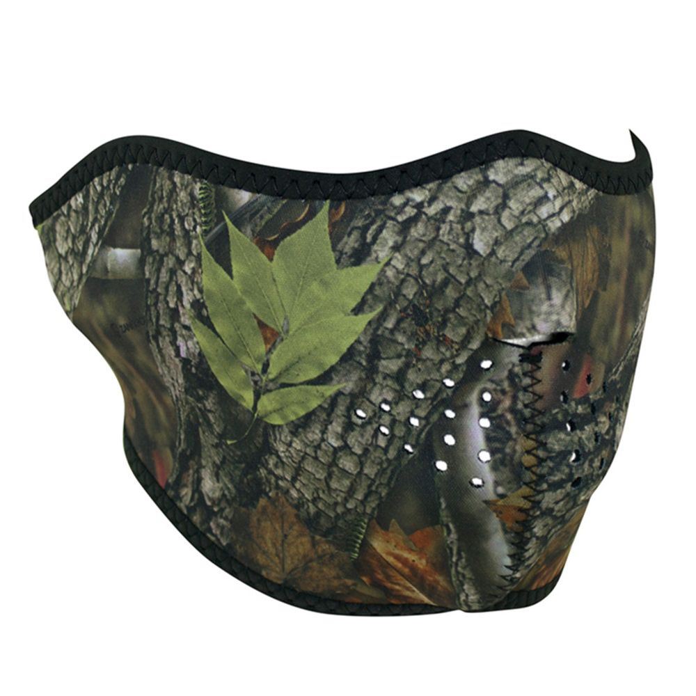 Don't let cold temperatures hold you back! Wear the Forest Leaf Half Face Mask for protection from the dashing winds and cold weather. This mask features a forest camo pattern for effective camouflage, and covers the nose, chin, and cheeks. The back is secured with a Velcro closure strap. Small vent holes ensure the mask stays breathable.