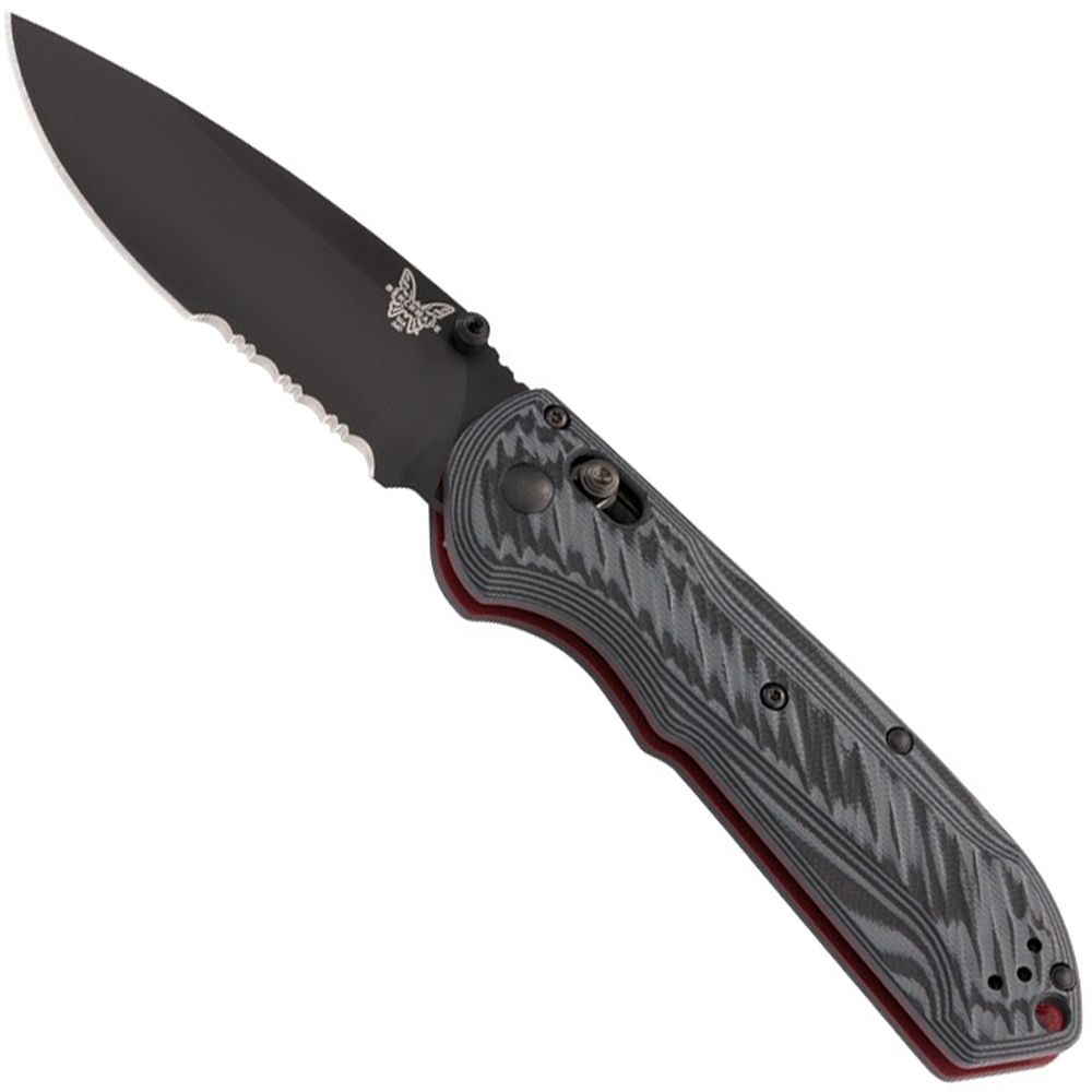 Form and function in the same package. The first variant in the Freek family brings together two incredibly durable materials, G-10 and CPM-M4 steel. The gray and black layered G-10 is milled to provide excellent grip and style, while the red G-10 base layer and anodized aluminum barrel spacers bring an additional pop of color to the handles. The high-strength CPM-M4 blade is designed for hard use, pushing the limits of what the already tough Freek was meant to do. This knife is a true super Freek.