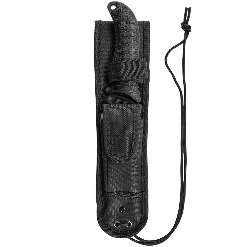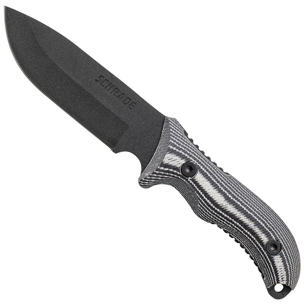 Schrade Frontier Full Tang Fixed Blade Knife, Powder Coated 1095 High Carbon Steel Drop Point Blade with Finger Choil, Ring Textured TPE Handle with Spine and Grip Jimping, Lanyard Hole, Black Nylon Belt Sheath with Ferro Rod and Sharpening Stone.