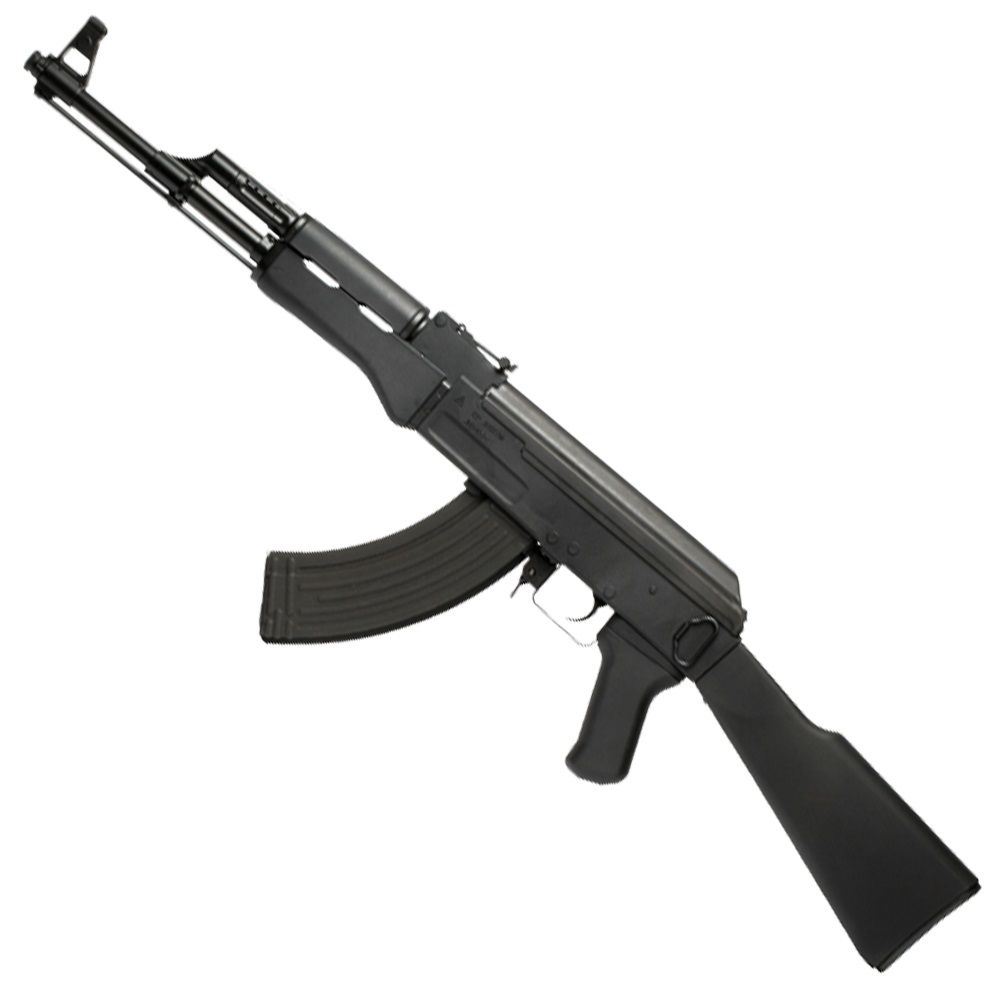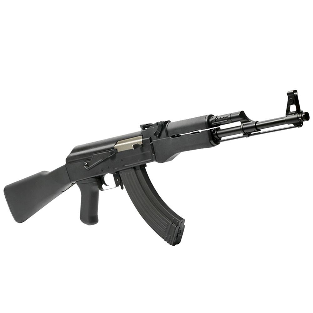 Head into battle with G&G's replica of a true classic: the Kalishnakov AK47. The Combat Machine RK47 is an AEG airsoft rifle that lives up to the legend it was based on. Just like the real steel rifle, the RK47 features an AK fire selector, adjustable sights, and a long fixed stock. It's constructed with a metal receiver and barrel with polymer furniture avilable with a black or imitation wood finish. It has an adjustable hop up and a muzzle velocity of 370 FPS. Batteries and charger not included.
