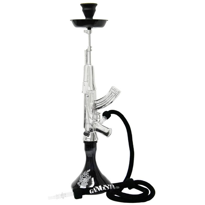 Gangster The Assault Rifle Styled Shooter Gun Hookah comes with our egyptian clay bowl and a washable hose.