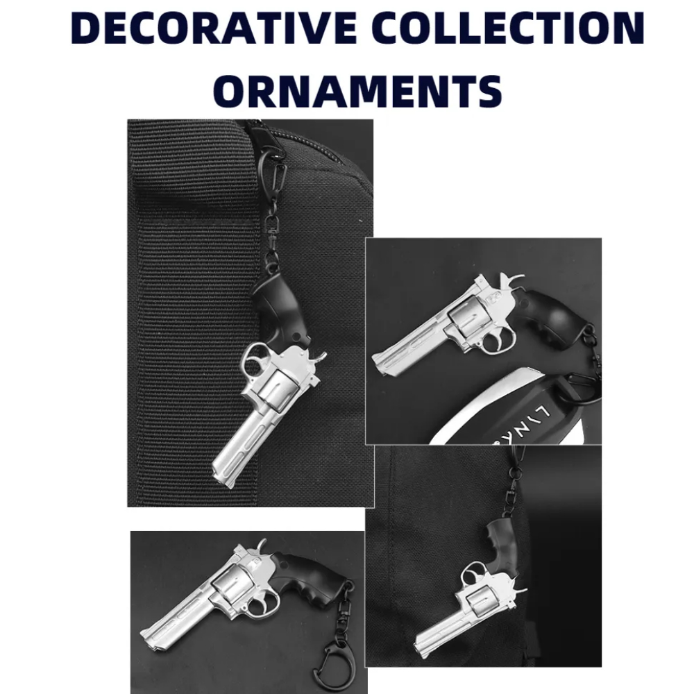 The attached chain and carabiner clip make it easy to secure and remove, while its compact size ensures convenience without adding bulk. Whether you’re a firearm enthusiast, a collector, or just looking for a unique accessory, this revolver keychain is the perfect choice.