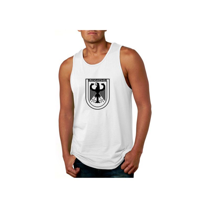- **Custom Print:** A Bundeswehr-themed design, usually showcasing the iconic Iron Cross or military insignia, printed on the front for an authentic look.- **Material:** Made from soft, breathable fabric to ensure comfort and durability.- **Fit:** A classic tank top fit, allowing for ease of movement.