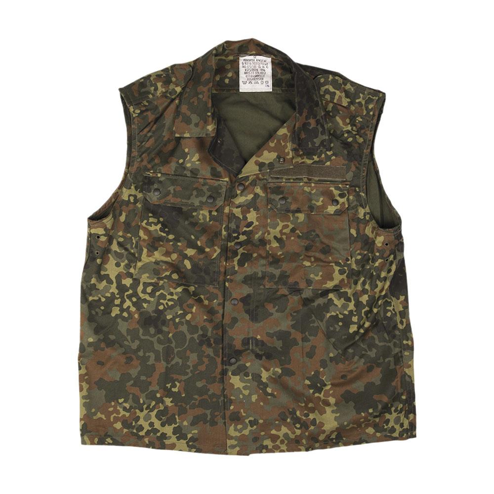 A German Combat Vest Flecktarn Military Surplus is an authentic tactical vest originating from the German military and featuring the distinctive Flecktarn camouflage pattern. This surplus vest is a practical and durable piece of gear that has been retired from active service and made available for civilian use. Designed with functionality in mind, the combat vest typically includes multiple pockets and pouches for carrying essential equipment, ammunition, and accessories. The Flecktarn camouflage pattern, characterized by its mottled appearance resembling natural surroundings, provides effective concealment in woodland and forested environments.