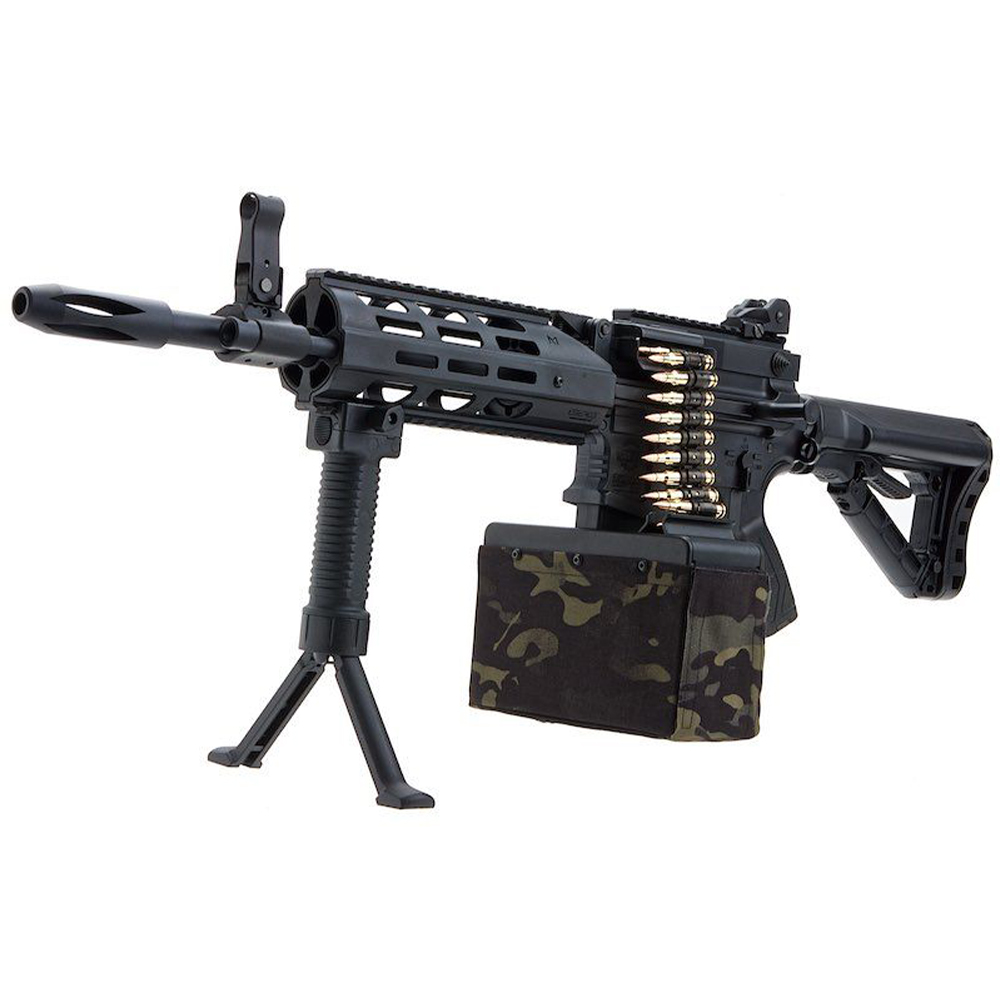 The G&G CM16 LMG Airsoft Machine Gun is a lightweight yet powerful support weapon designed for sustained fire and versatility on the battlefield. Featuring a polymer receiver and M-LOK compatible handguard, this airsoft LMG combines durability with maneuverability. Its integrated MOSFET and ETU enhance trigger response, while the 2500-round electric box magazine ensures continuous firepower.