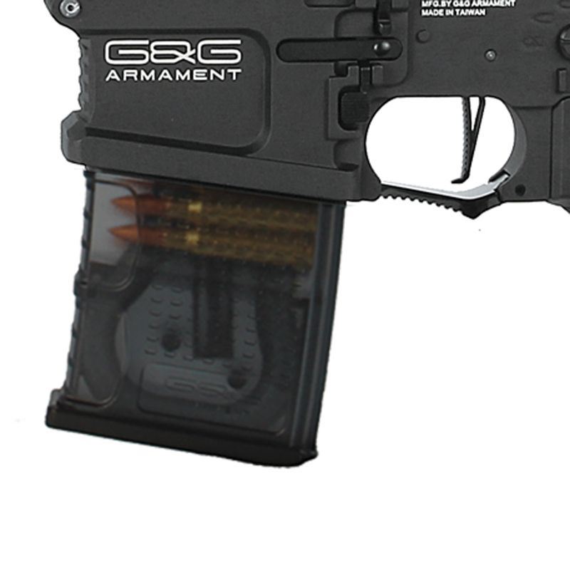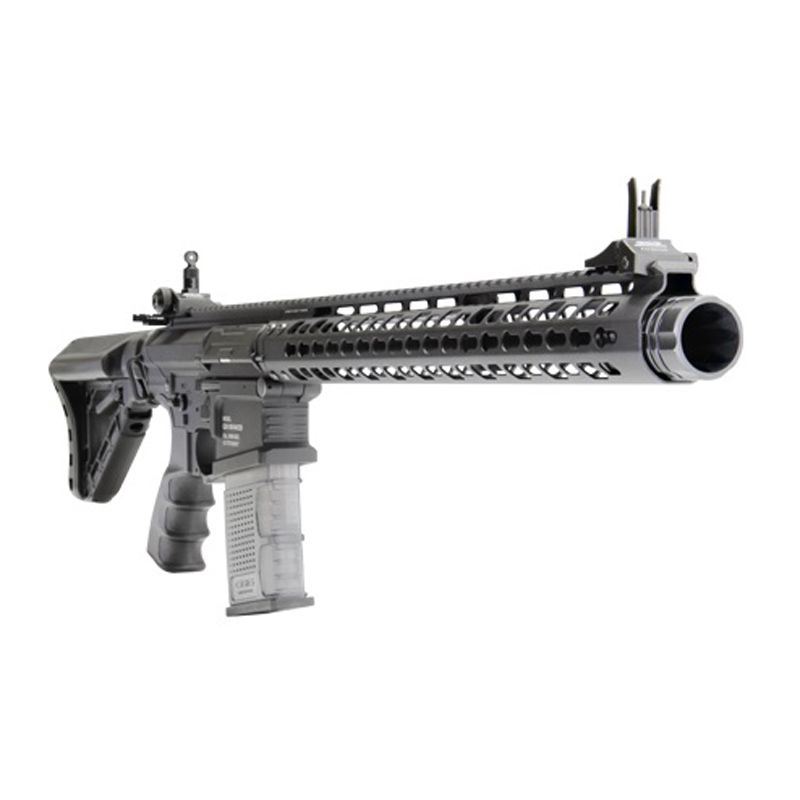 Machined aluminum alloy receiver, barrel assembly and Keymod handguard.20" Keymod handguard allows user to easily add any Keymod compatible accessories, providing the user the ability to fill multiple roles.Full metal G2 gearbox features a high torque motor, 8mm bushings and bearings, quick change spring guide as well as an inline wired MOSFET.The G2 MOSFET provides the user the ability to program 3 or 5 round bursts, as well as acts as a low battery indicator.Translucent .308 style magazine features a cut off follower that stops the gun from firing once it is empty.Full length 20mm accessory rail allows for easy addition of optics and other accessories.Adjustable stock allows for a customizable length of pull as well as a comfortable cheek weld.