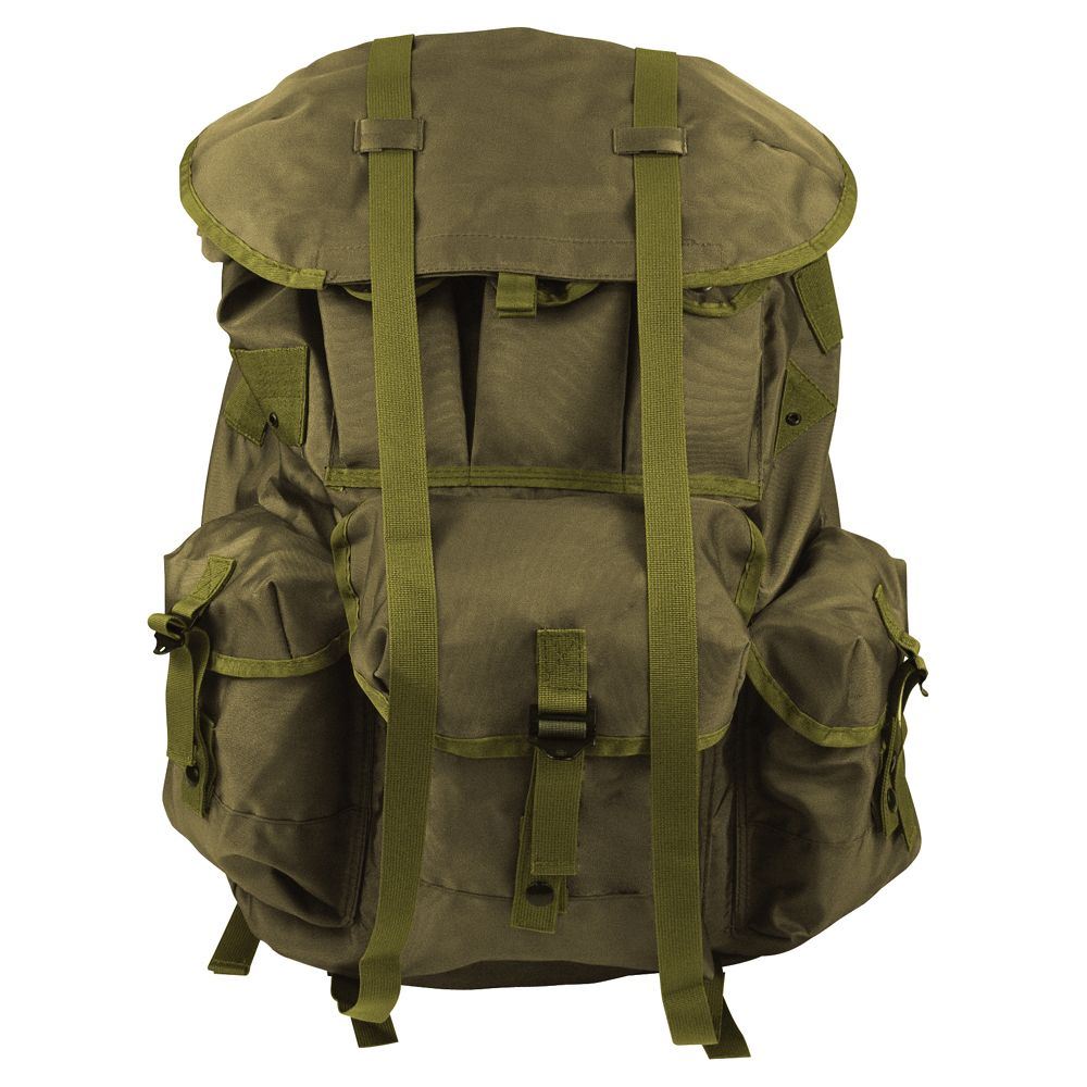 GI Style Medium OD Alice Pack No Frame is a medium size bag with no frame. This bag is made in the USA with top quality craftsmanship. The bag is made from 420 denier nylon material which is rugged heavy duty material. This makes Alice pack strong and sturdy. The bag has detailed construction with three huge outside pockets. The bag features accessory loops and water proof lining which makes it perfect to carry during monsoon too. The padded kidney strap and pad is an added feature. The medium size Alice pack can be carried comfortably as it has heavy padded shoulder straps. Though the bag has no frame, it is durable and long lasting. It complies with all GSA features.