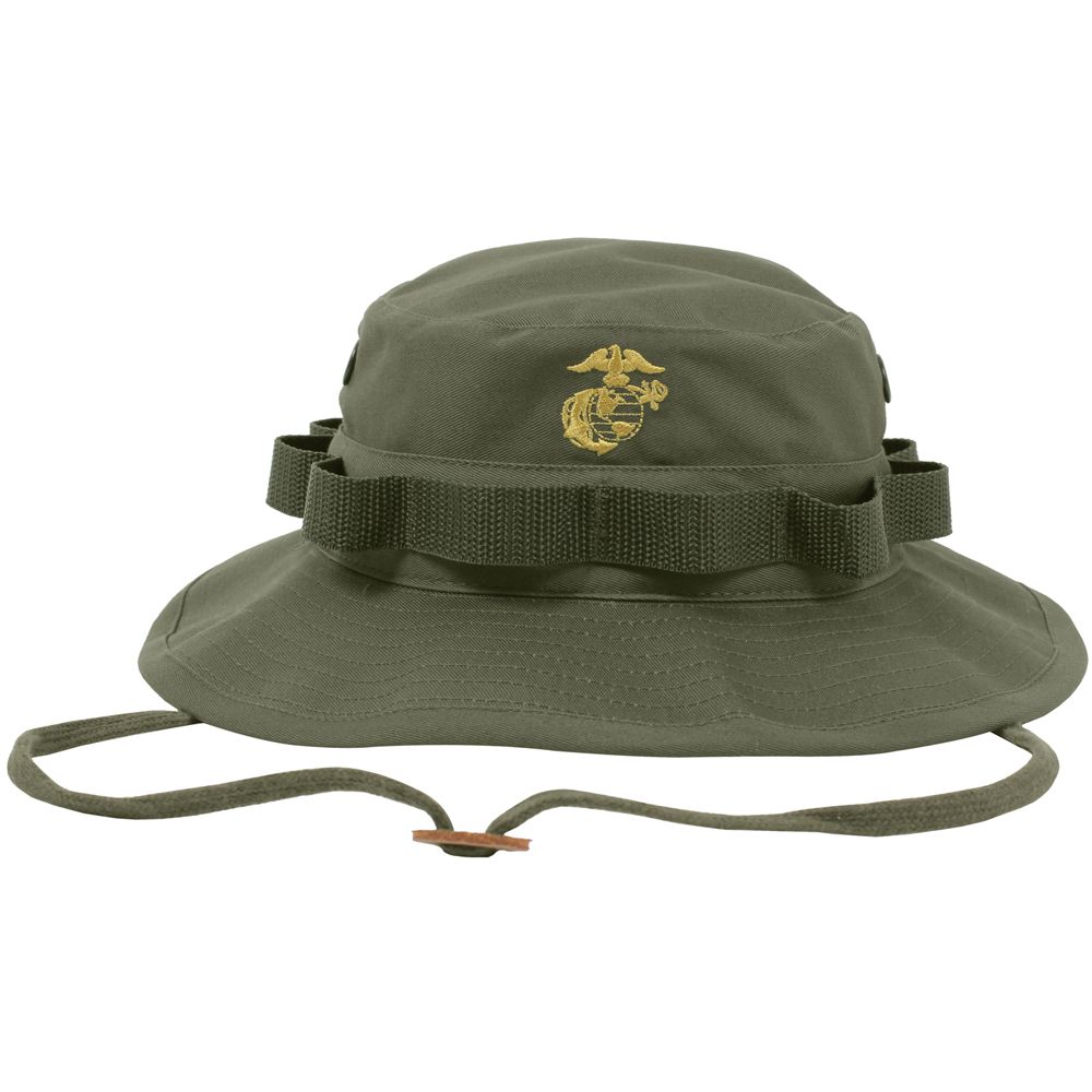 Globe & Anchor Boonie Hat features our classic military style boonie hat with an embroidered globe & anchor on the front. The boonie hat features 4 screened vents for ventilation, loops woven into the sides of the boonie ideal for leaves and branches and an adjustable chip strap.