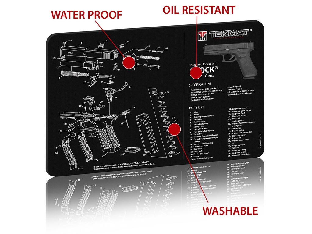 Keep your gun and workspace protected with the TekMat Glock Gen 5 Gun Cleaning Mat, engineered for durability, clarity, and reliable surface protection.