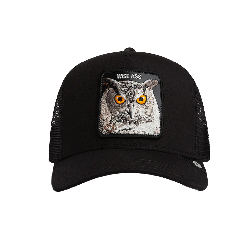 Goorin Bros Wise Ass Trucker Cap features a bold owl patch that represents sharp wit and attitude. Built on a classic trucker silhouette, it combines a structured front panel with a breathable mesh back for comfort and durability in everyday wear.