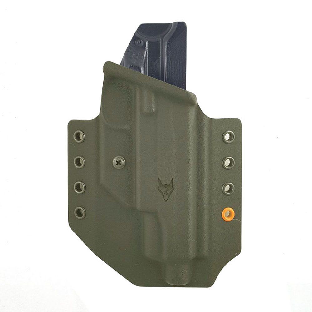 Our flagship line of over the waistbelt (OWB) holsters, the Gryphon comes with the ability to accept pistols with optics, upgraded sights as well as extended barrels. All our holsters come standard with an adjustable retention point so you can set the retention just right.