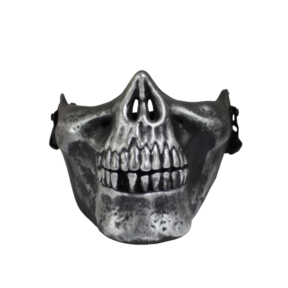 Complete your costume with the bold and eerie Half Skull Mask, perfect for Halloween, cosplay, and party events. Crafted from durable plastic and designed to comfortably cover the lower half of the face, this mask delivers an eye-catching skeletal look for both casual fun and theatrical use. Whether for stage shows, carnival parades, or costume parties, this accessory enhances your appearance with sinister flair.