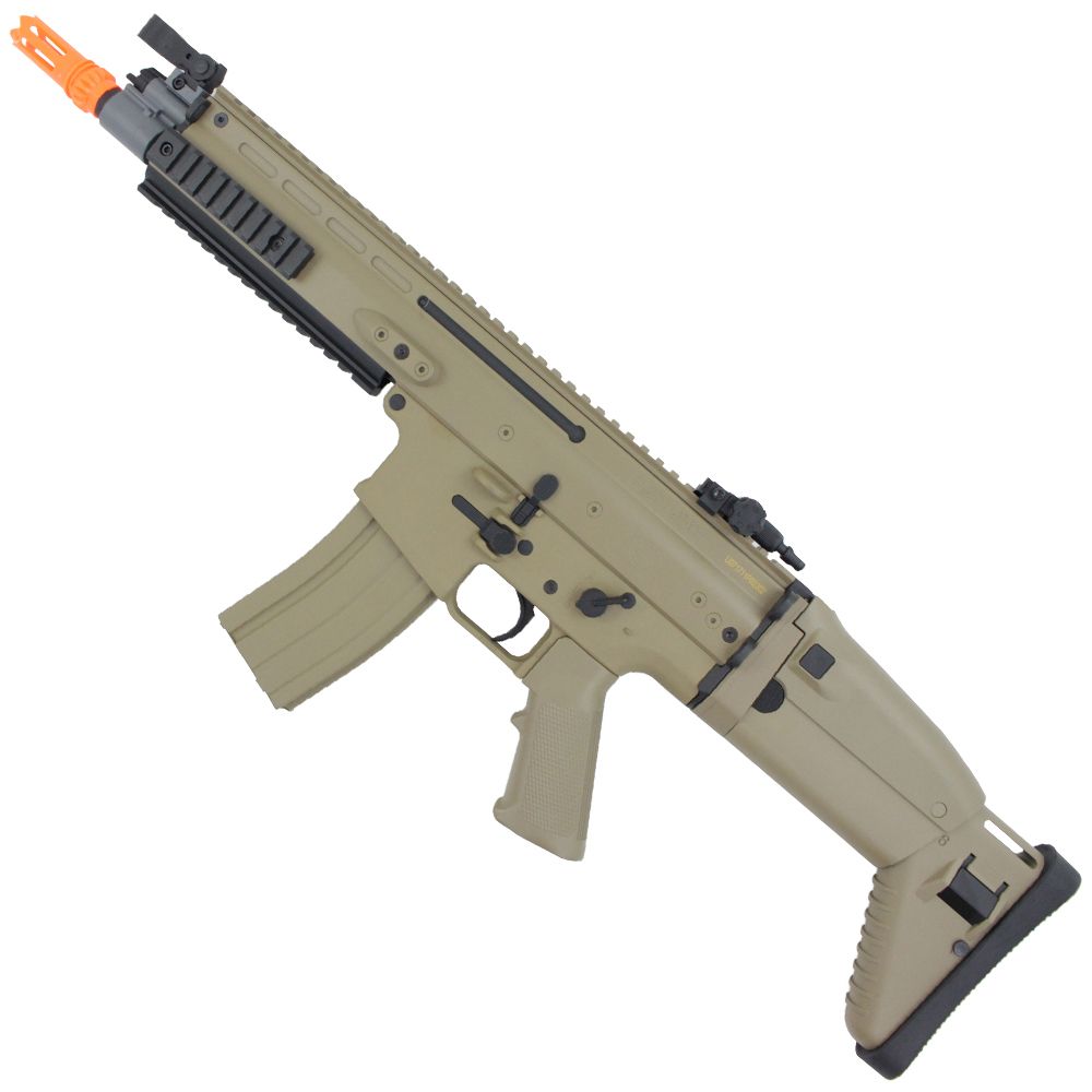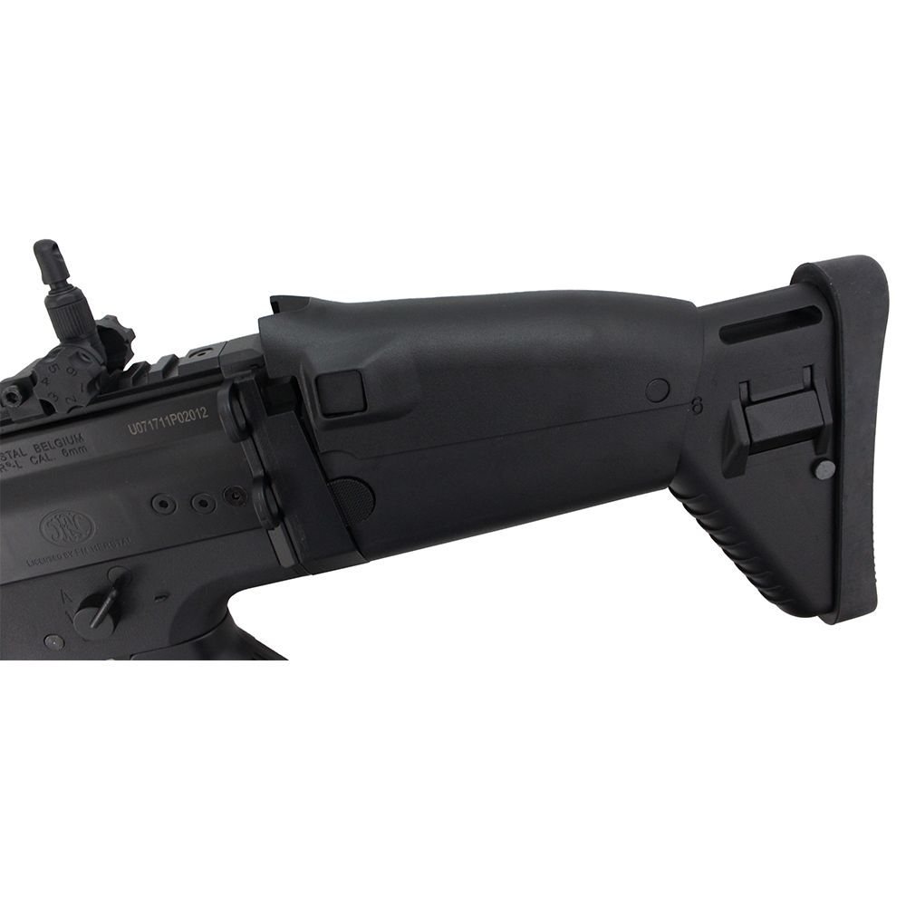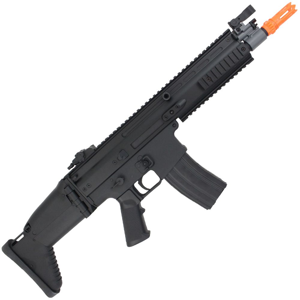 This FN Herstal SCAR-L replica is a great entry level rifle for airsoft beginners. The cost and weight is kept low with an ABS polymer construction, but it still packs a punch thanks to a full metal V2 gear box with high quality bearings and bushings. This iconic rifle has a unique six-position folding stock with a check rest that can be adjusted to accommodate raised sights and scopes. Accessory customization is easy with the monolithic upper rail and three supplementary picatinny rails on the handguard. The SCAR-L comes with almost everything you need to hit the battlefield: an 8.4V NiMH battery, a wall charger, and two 350-round hi-cap magazines.