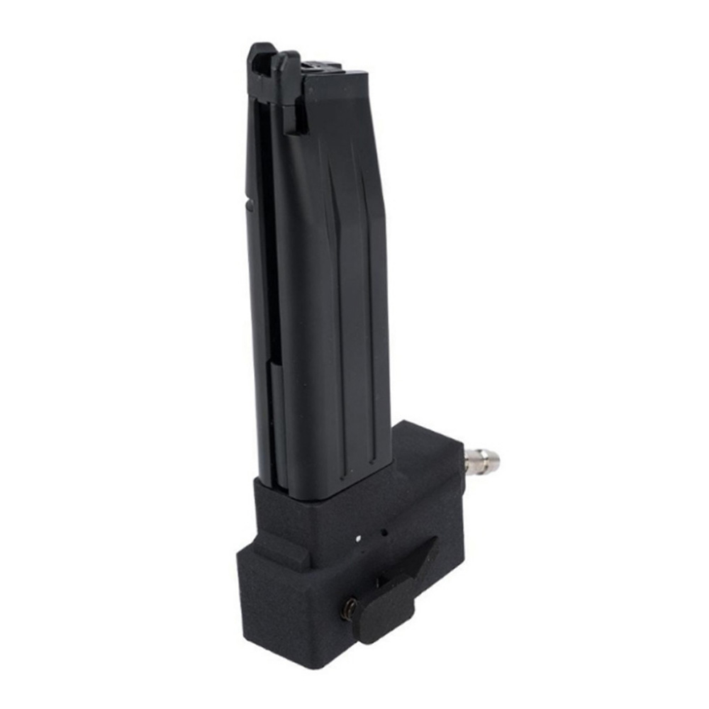 Running out of BBs should never be the case when you get your hands on a Tapp Airsoft Adapter for your airsoft gun! This brilliant design converts the hi-capa gas pistol magazine to accept the lower AEG M4 mag adapter. Simply connect the line onto HPA nozzle to power your airsoft pistol. The modular capability allows the lower to swap out to different Tapp Airsoft models for the M4, ARP, shotgun shell and more! Not only does this come with the adapter, it also comes with the magazine to get you out on the field. The feeding is smooth and consistent, giving you plenty of shots to take out your opponents.
