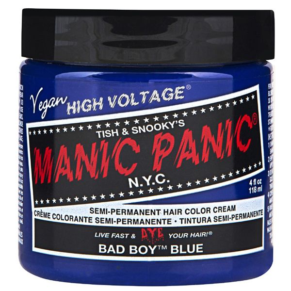 This color is great for baby blue locks with a "naughty streak". Fashionable rocker Gwen Stefani has rocked this hair dye on the red carpet of the MTV Video Music Awards! Because it is one of our lighter hues, bleaching to a level 9 or 10 blonde is recommended before dyeing. Not only do we offer Bad Boy™ Blue for your hair, but we also sell a Lethal™ Lipstick with the same name. Vibrant color results are best achieved by applying to hair that has been pre-lightened with Manic Panic® Flash Lightning® Bleach KitsCream Formula Semi-Permanent Hair Color. Vegan Formula colors and conditions hair.Manic Panic® Hair Color is ready to use, do not mix with peroxide. Vegan ingredients. PPD and ammonia-free.Tested on celebrities, not animals™.