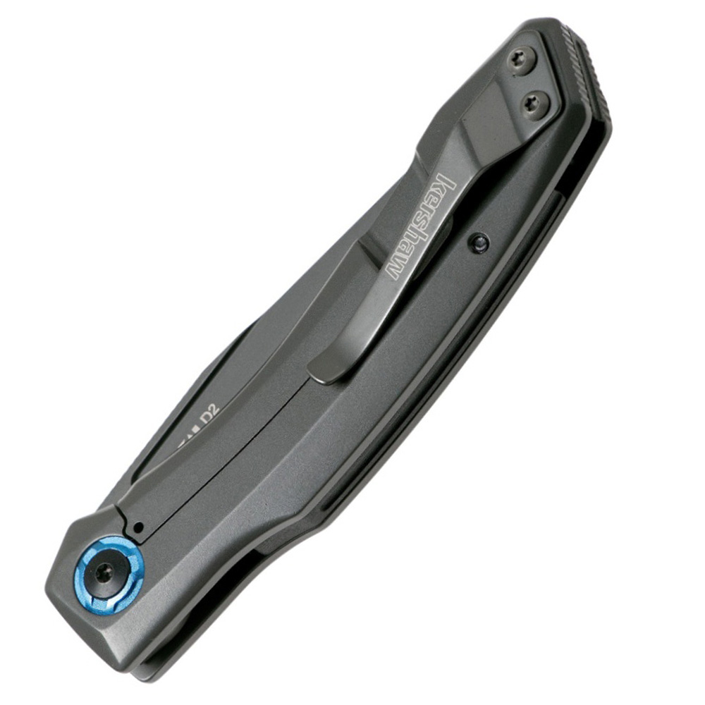 With so much to offer, the effectively beautiful Kershaw Highball is perfect for those who seek innovation. It comes with a phenomenal D2 high-carbon tool blade which will efficiently answer to the need of most tactical users as well as a modernized steel handle to provide them with perfect grip dexterity. The blue custom trim ring that surrounds the pivot adds great contrast to the grey build when closed for a breathtaking finish. The blade can be easily deployed as well simply by pulling the recessed groove onto it just like you would use a thumb stud.