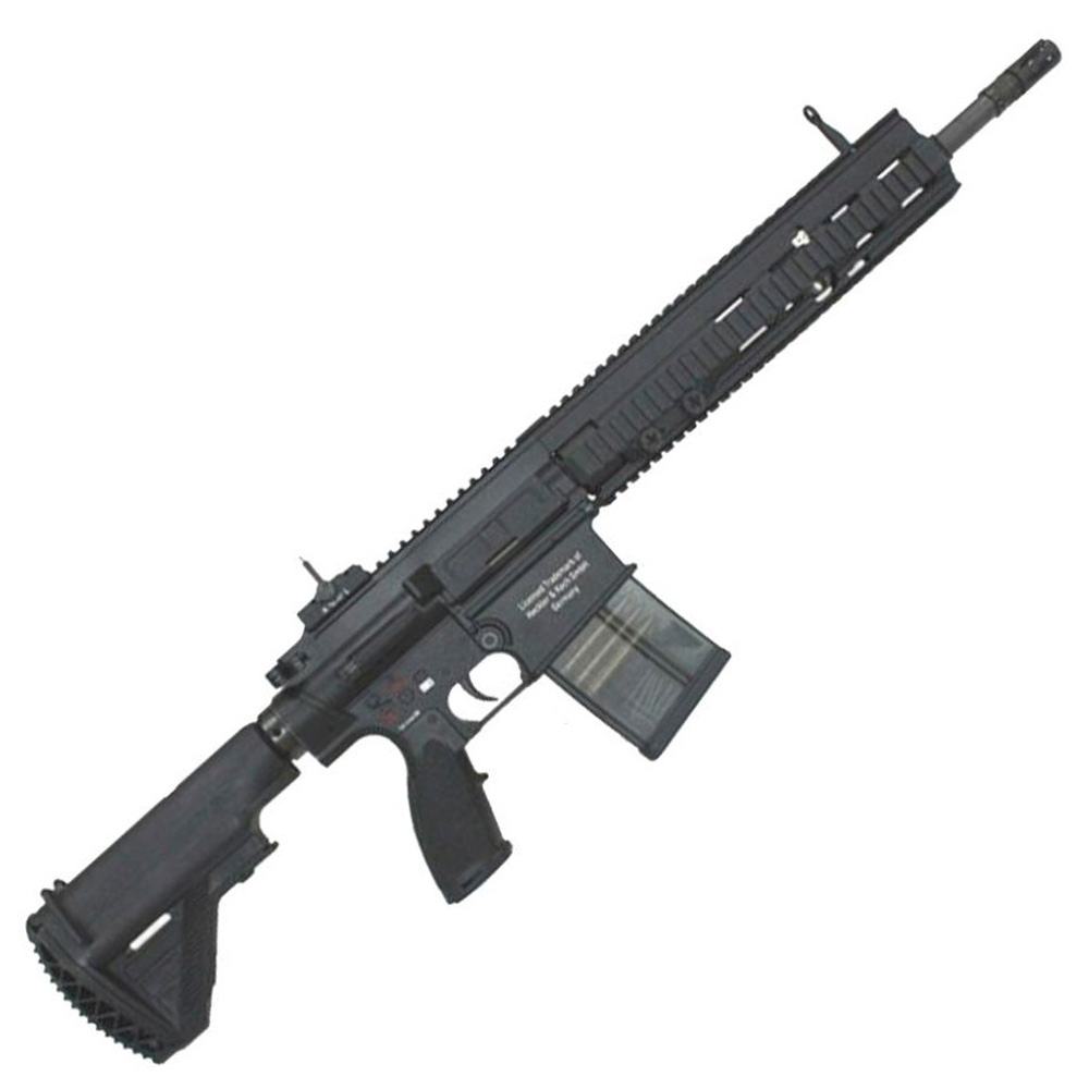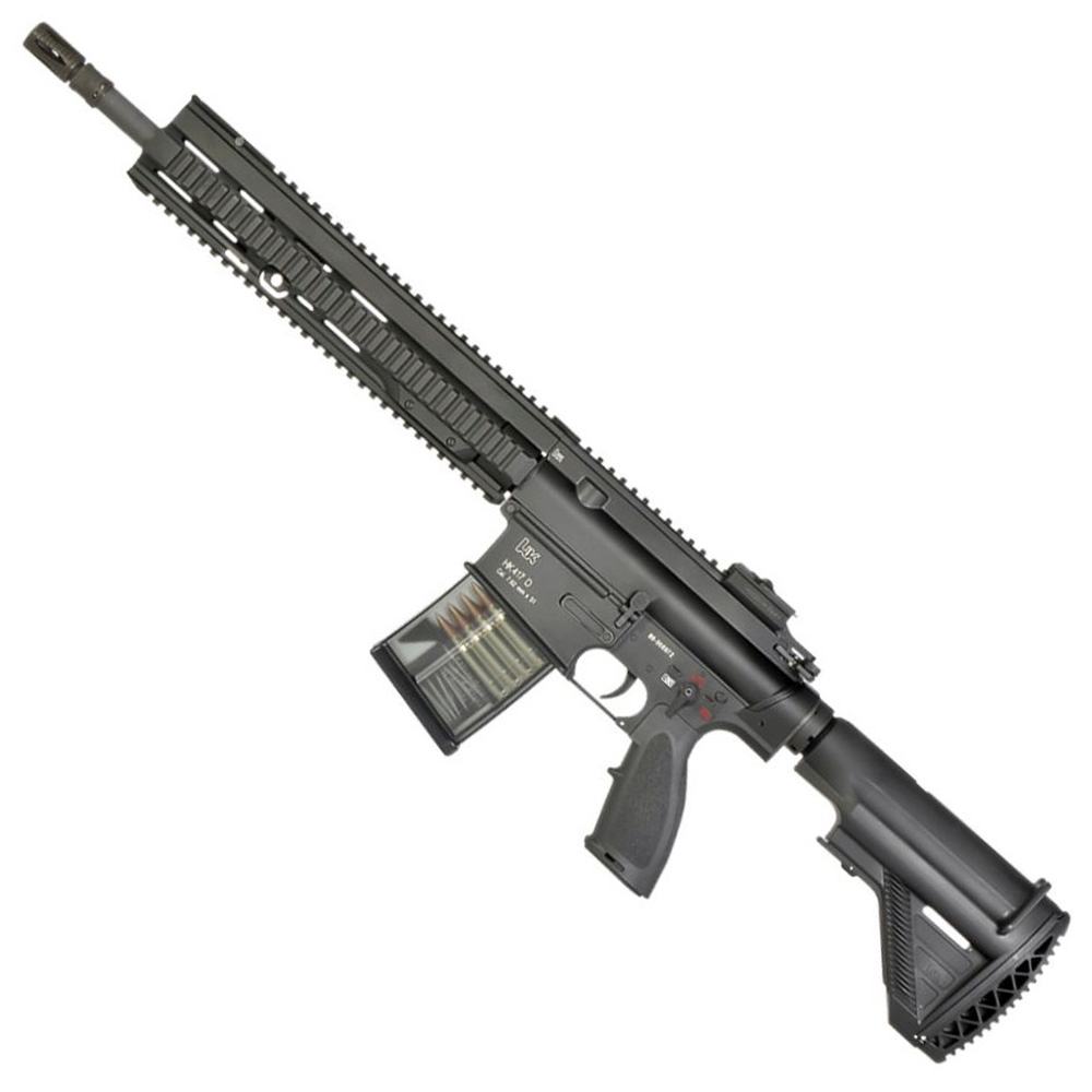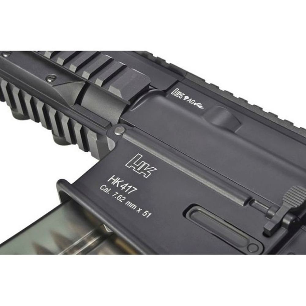 The Umarex HK417 is patterned after the wildly popular rifle from H&K the 417. The 417 is a select-fire, AR patterned rifle chambered in .308 generally used as a designated marksman rifle. This particular variant is the 12" HK417D that sports a shorter barrel length for added maneuverability. As this is the Version 2 HK417D by VFC, you can adjust the hop either from the chamber or from the gas block, this added ability can help you adjust your hop up on the fly with ease. Internally the HK417 features all metal gears with adds to the overall durability of the gun and is ready for 11.1v lipos. Its battery compartment is accessible by removing the butt pad and the storage space is enough for even Titan batteries.