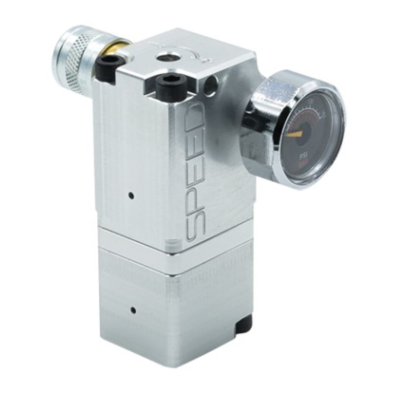 The SPEED Airsoft Sport Edition Air Regulator incorporates a stable air regulator unit within an ultra compact form factor, along with other features including two 1/8-NPT threaded ports so players can custom configure the regulator for their rig set up. It can output from 0 to 140 psi and will safely vent in the event of over-pressure.