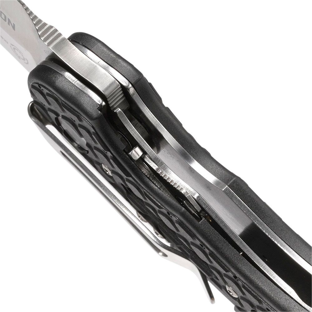 Picks fights with heavy-duty tasks and wins. Flavio Ikoma’s new rugged everyday carry folding knife is looking for a chance to flex its strength. An IKBS™ ball bearing pivot system with a flipper smoothly deploys a beefy modified drop point blade. Then the new innovative ILS safety sets a pin between the frame and locking liner and you are ready get to work. Grab the heavy-duty waffle iron traction grip handle and good luck letting go.No Time Off from designer Flavio Ikoma of Presidente Prudente, Brazil, was initially designed to be a mechanic’s folder. It’s strong, yet versatile enough to handle whatever tasks you throw its way. You’ll be amazed with how smoothly Flavio’s IKBS™ ball bearing pivot system deploys the blade on this little workhorse. And you’ll love how the patented ILS™ (Ikoma Locking System) ingeniously uses a lever with an elbow to automatically set a pin between the frame and liner. This helps prevent the liner from slipping down the blade ramp, and gives you an extra layer of safety when debris such as lint, dirt and grease gunk up your locking liner. When you’re done using your knife, press down on the ILS™ thumb rest and slide the locking liner over to disengage the safety.