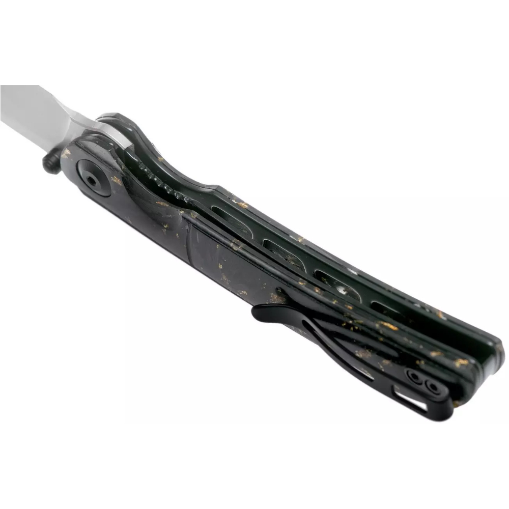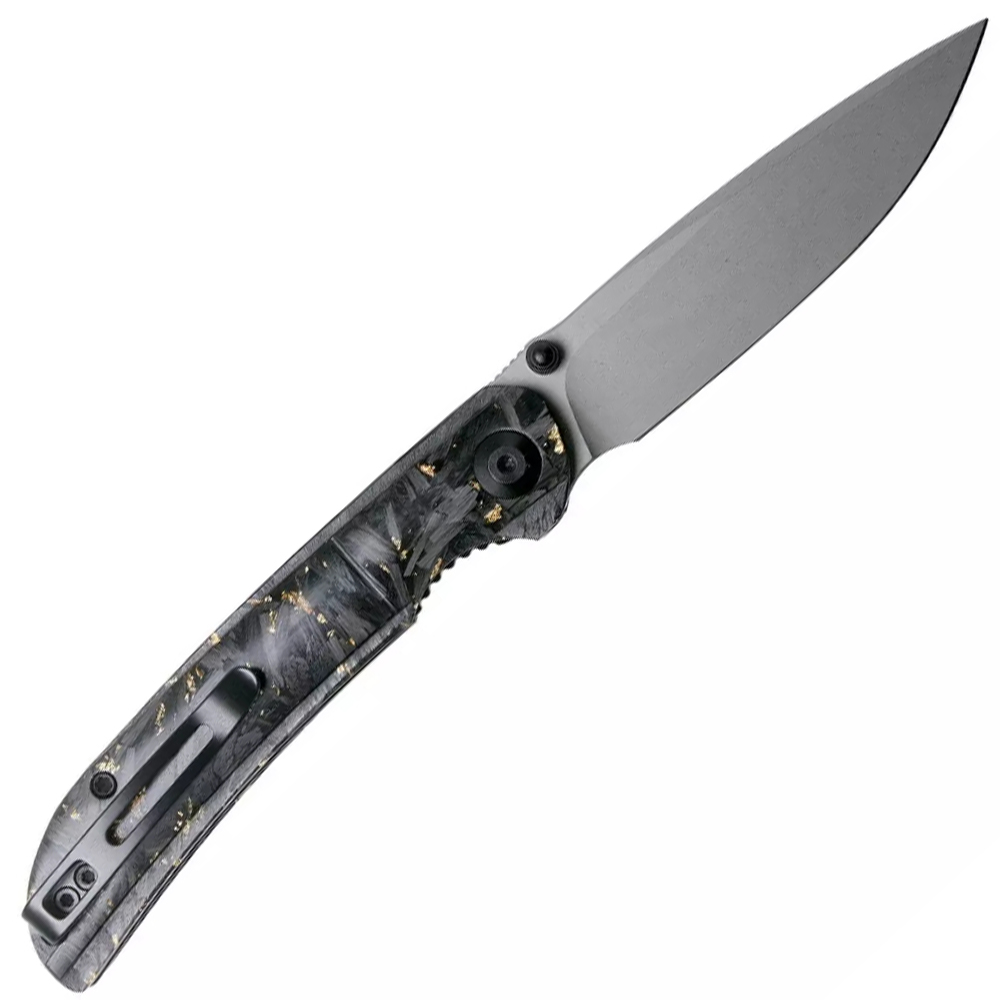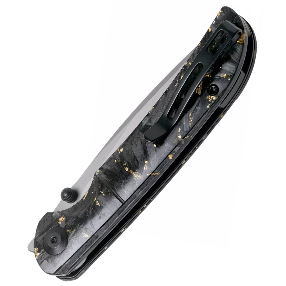 Drop point Nitro-V blade is tough and has excellent corrosion resistance. Made from shredded carbon fiber and golden shred in clear resin, the contoured handle fits in any hand and provides a comfortable grip feel, ideal for everyday hunting camping carry. Civivi Imperium is equipped with a thumb stud and flipper tab for multiple opening options.