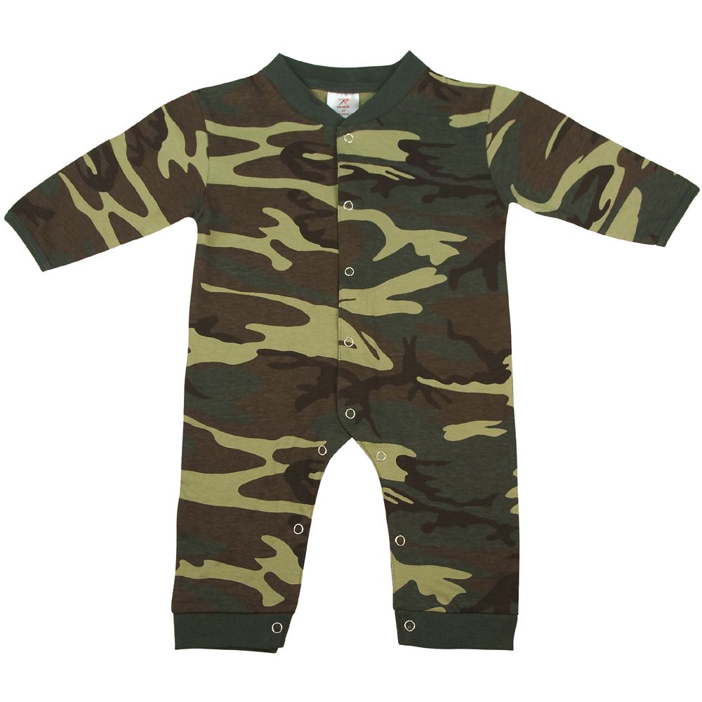 Infant Camouflage Long Sleeve Leg One Piece Bodysuit is made from 100% cotton. It is soft on your baby’s skin. It features a snap closure for bottom and chest. This one piece suit is available in sizes from 3 months to 3 T. It has long sleeves and long legs hence it covers your baby from neck to toe. It features military green lining on the neck, wrist cuffs and leg cuffs. It also sports a white label on the inner side of the neck. The camouflage print with military green lining gives this suit a stylish look.
