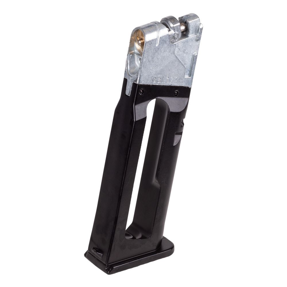 Built with a metal alloy body and a high-tension spring, it ensures reliable feeding and secure housing for 12g CO2 cartridges. Ideal for those who want to keep extra rounds ready.