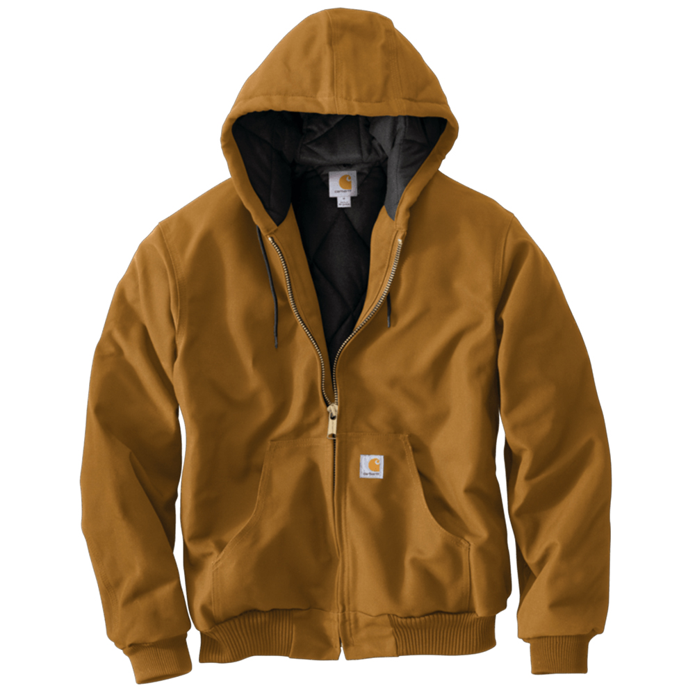 Rancher or lineman, anyone who works outside can appreciate the cold-weather chops of this men's hooded jacket. Proudly , it's crafted with rugged cotton duck, and the body and hood are lined with quilted flannel for under-the-covers warmth.