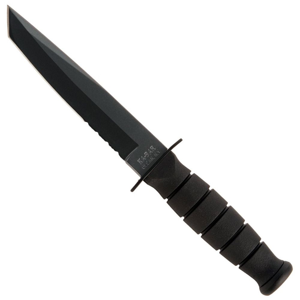 The Tanto blade shape, of Asian influence, has a thick pointed blade that's rugged enough for the most difficult tasks. A partially serrated edge makes cutting looped and synthetic materials a breeze. Tang stamped USA. Hard plastic MOLLE compatible sheath included.