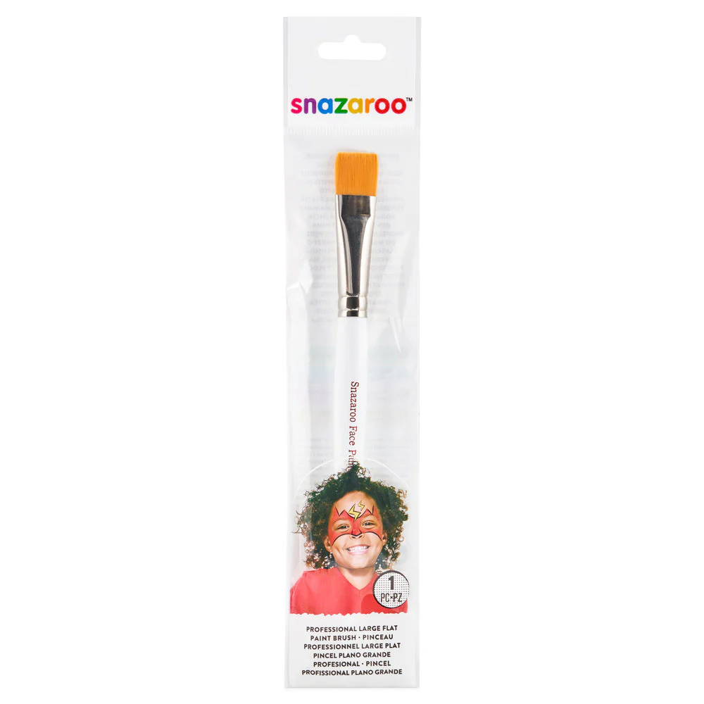 The Snazaroo Professional Large Flat Face Paint Brush is a must-have tool for anyone looking to create bold, smooth face paint designs with ease. Ideal for applying base coats and covering larger areas, this flat brush offers excellent control and coverage. Designed with synthetic bristles and a sturdy handle, it ensures precision and comfort in every stroke. Whether you're face painting for parties, festivals, or professional gigs, this brush delivers high-quality results every time.
