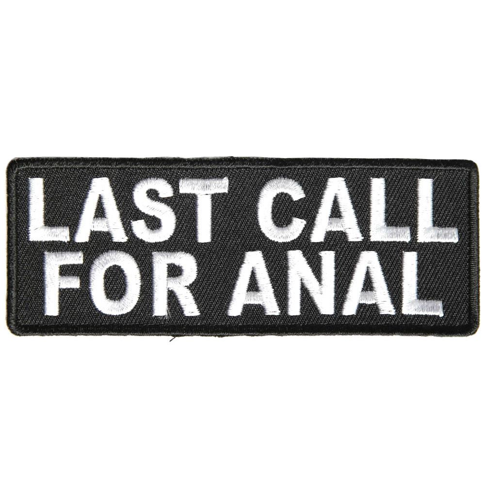 Last Call For Anal Fun Iron On Patch measures 4x1.5 inches and is embroidered in Black / White. The Patch can be sewn on to leather jackets, vests or ironed on to clothing. We recommend sewing on your patches, regular household iron will not adhere them properly. You can Heat Press the Patch for permanent bonding. We recommend 280 Fahrenheit for 15 seconds. Do not iron on patches to Leather or Nylon material you will end up scorching your fabric. The embroidered die cut borders makes it easy for you to sew the patch on. Keep in mind we do wholesale these patches. We also do make custom patches given you are ready to have at least 20 pieces made.