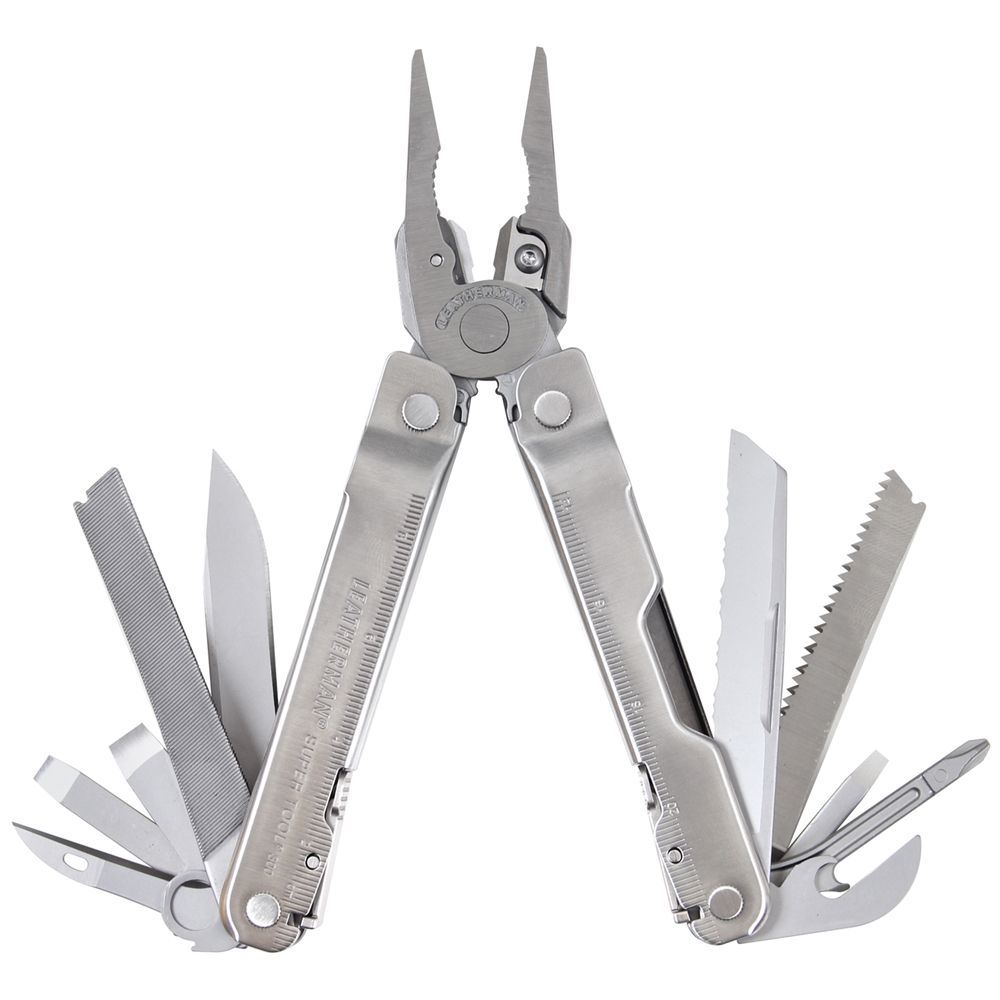 Made in USA of Foreign Components, Needle-Nose Pliers, Regular Pliers, 154 CM Replaceable Wire Cutters, Stranded-Wire Cutters, Electrical Crimper, Wire-Stripper, 420HC knife, 420HC serrated knife, Saw