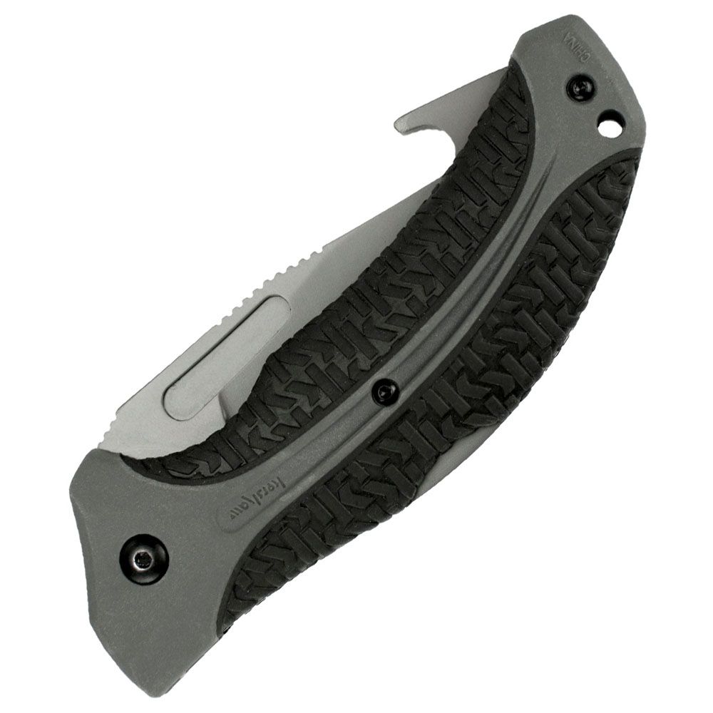 This Kershaw hunting knife offers multiple grip options and Kershaw's K-Texture™ on the handle for a knife that's designed to work with you. An oversized choil and thumb grooves on each side of the handle enable you to choke up on the blade when necessary. Mid-spine jimping provides a good grip for fine control. A big belly makes skinning easier. This manual folder opens using the large groove in the blade-so there's no thumbstud to get in the way of your work. A sturdy mid-lock secures the blade. The LoneRock Folding Drop Point is part of the LoneRock series of state-of-the-art hunting knives from the knifemakers at Kershaw. This new series offers a collection of tough, versatile outdoor tools made to stand up to just about anything your next hunting trip can dish out. Whether you need to choke up on the blade or grip the full handle for additional leverage, these knives are always easy to use and provide an extra secure grip. Part of that secure grip is thanks to the contoured handle, part is thanks to Kershaw's exclusive K-Texture grip. The K-Texture material is both textured and rubberized to provide a non-slip grip, even in extreme conditions. It makes all the difference in getting a secure grip on your tools and being able to use them comfortably. Includes nylon sheath.