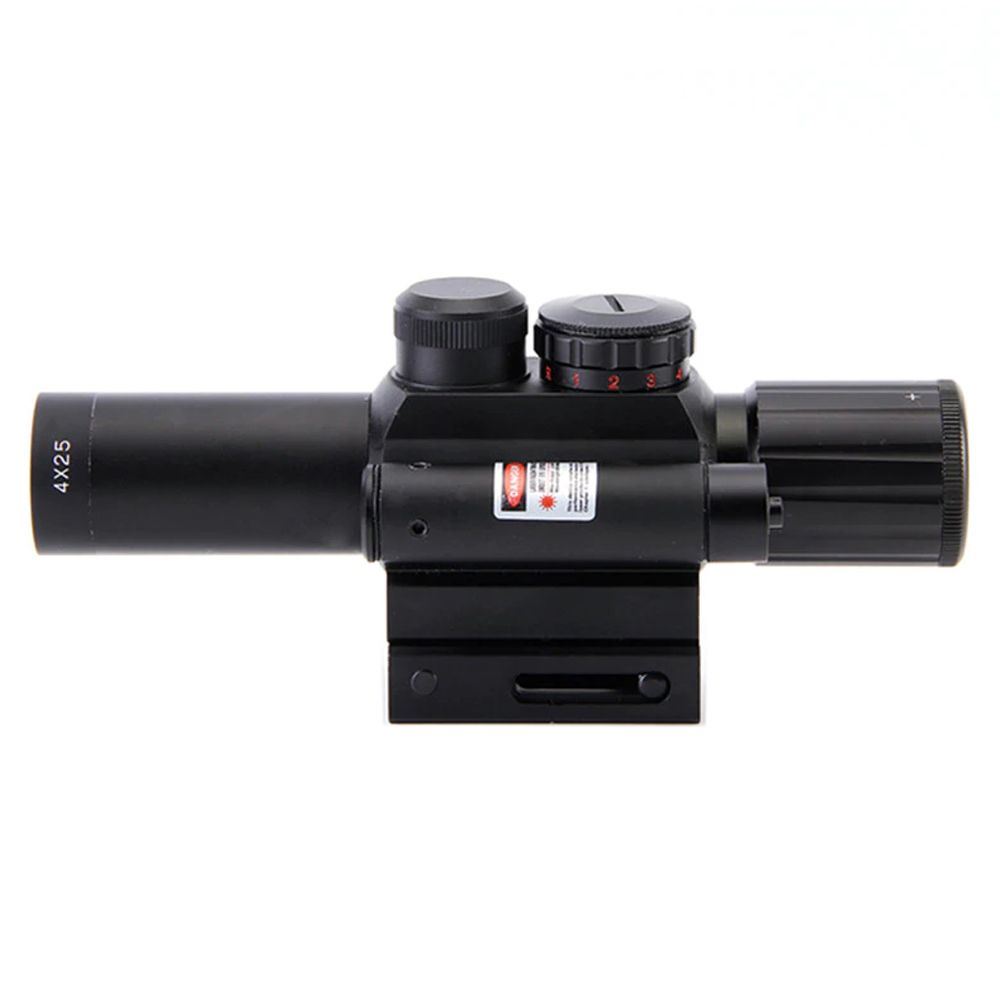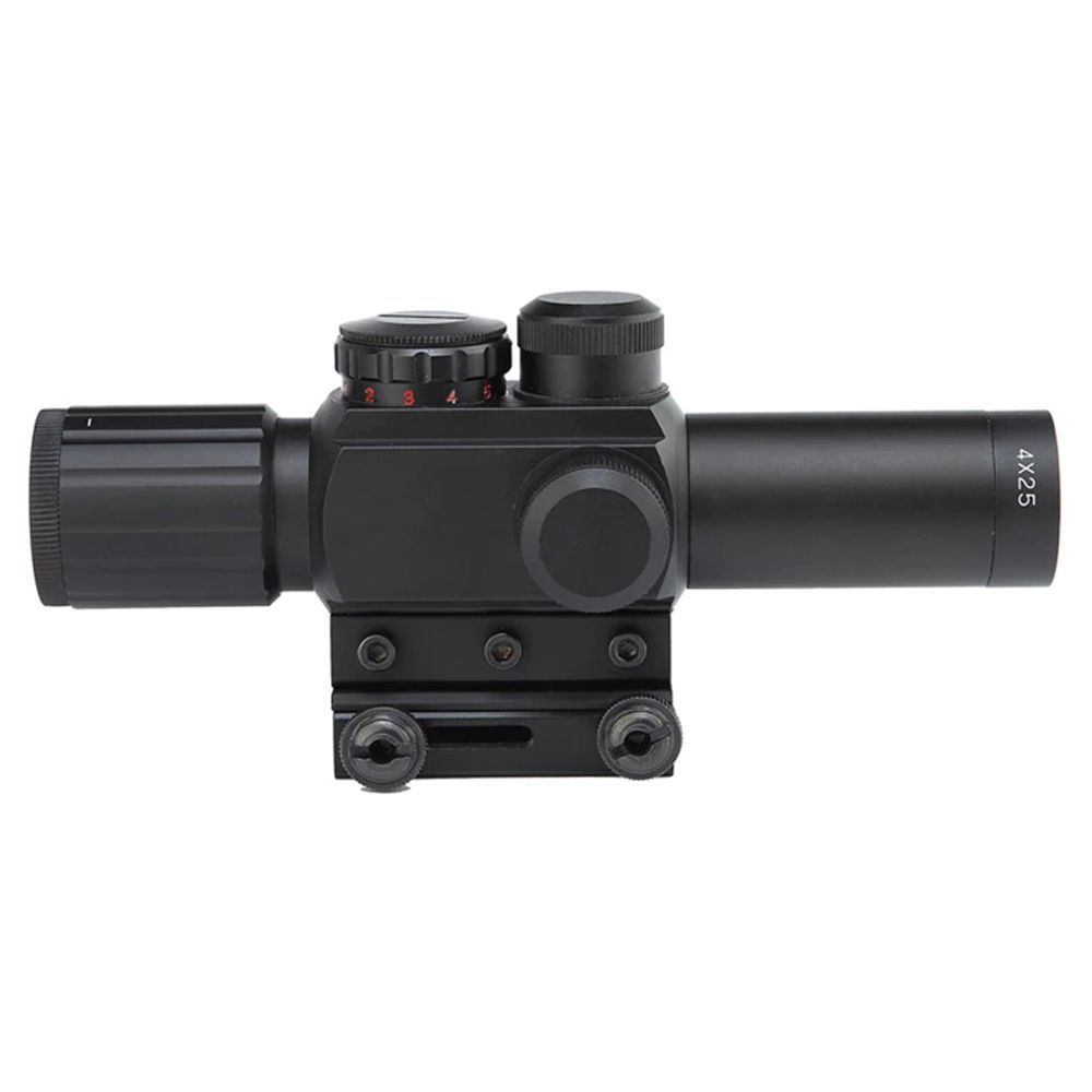 Model: M6 4x25Magnification: 4xObjective Diameter: 25mmEyepiece Diameter: 23mmField of View: 5.2° @ 100 ydClose Focus Distance: approx. 2m (6.5ft)Exit Pupil Diameter: 6.25mmEye Relief: 70mm (2.76 in)Optical Coating: Fully multi-coated Bak-4 opticsWaterproof/Fogproof: Yes (Nitrogen purged)Windage/elevation: +/- 35 MOA fingertip adjustmentsFast-Focus Eyepiece: YesBody Structure: One-piece 30mm metal tubeColour: matte blackLength: 180 mm (7.1 in)Weight: 424 g (0.9 lb)Scope Mounts: built-in 20-25mm Weaver style mounting rail brackets