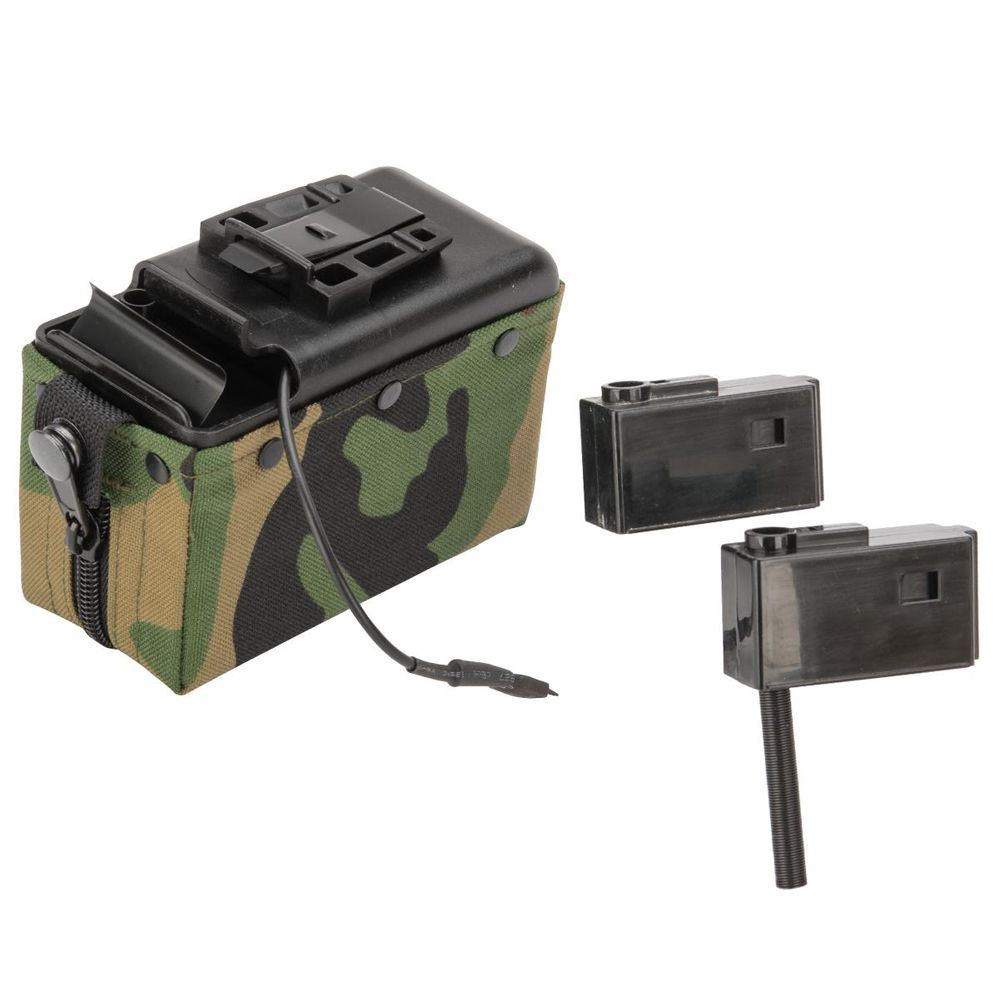 This is the compact version of the box magazine for the A&K M249 series AEG squad automatic weapons with 1500 round BB capacity and is covered in a camouflage fabric casing for an authentic and aggressive new look!