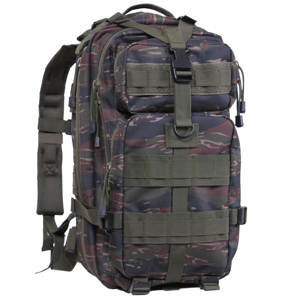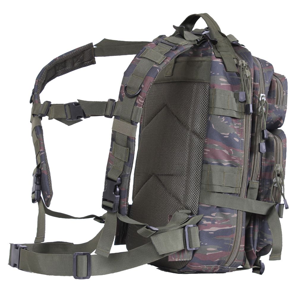 A top choice for lightweight missions, the Ultra Force Medium Transport Backpack will keep your equipment and tools organized and secure. It features one large compartment with a zippered pouch and a mesh pocket for easy accessibility, one medium compartment with mesh storage, and two additional exterior zipper pockets. No need to put a pack down to pull out a water bottle, there is also a compartment for a hydration bladder. With plenty of MOLLE webbing loops, removable straps and rip resistant construction, the pack is a perfect combination of comfortable compactness and bring-it-all capacity. Ideal for camping, hiking, hunting and backpacking.
