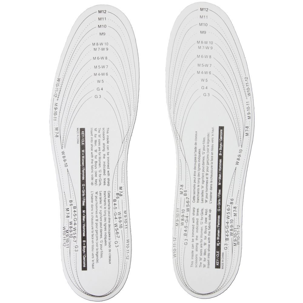 Rothco Memory Foam Insoles feature a 4mm memory foam center with a 1mm white EVA top. The foam insole can be added to shoes or boots for extra comfort and fit the following shoe sizes. Men: 4-13, Women 5-10, Boys 4-6, Girls 3-4.