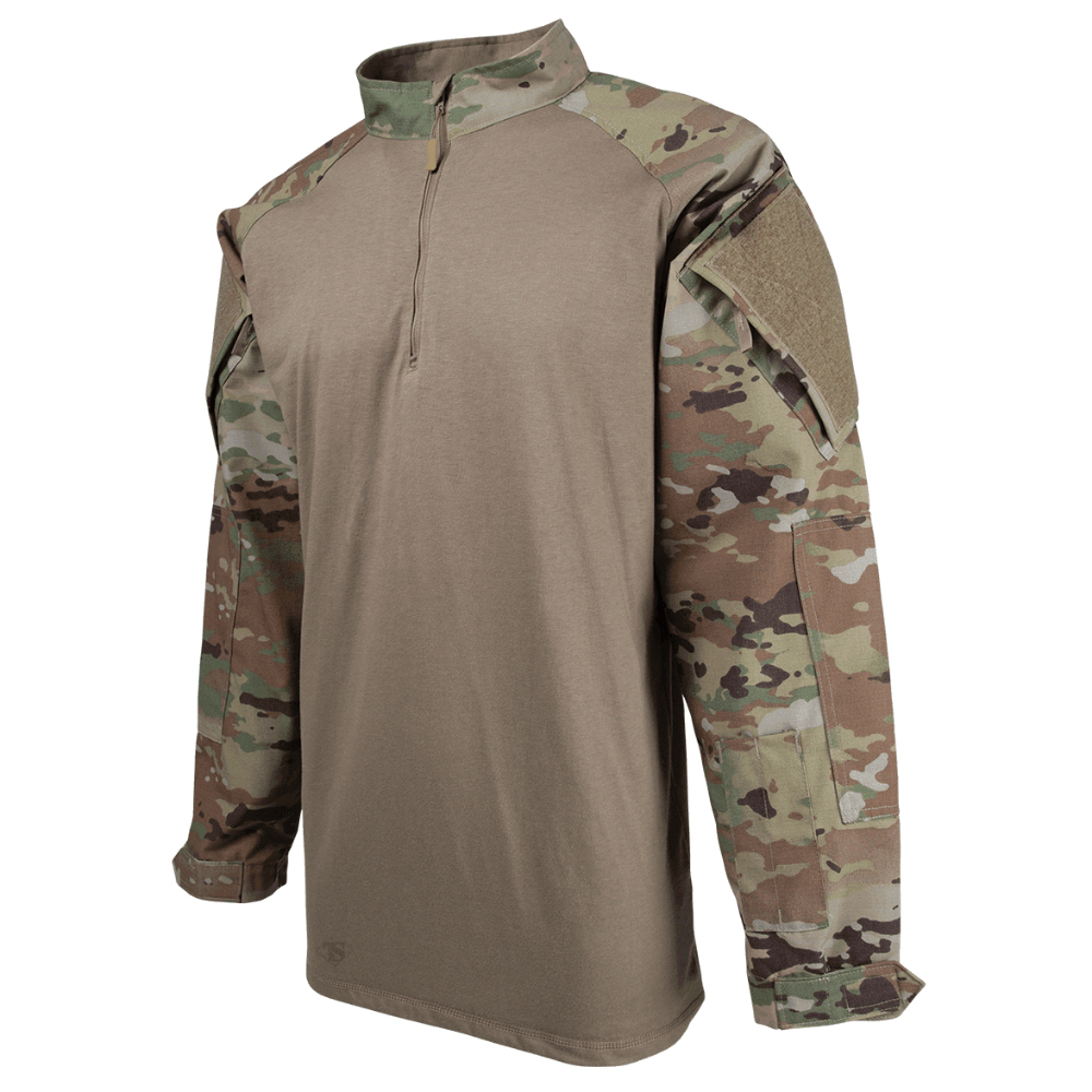 This combat shirt is designed to provide protection in its sleeves and collar whilst offering increased comfort for wear with body armor and vests. The body is composed of 60% cotton and 40% CORDURA Baselayer fabric, which will neither melt nor drip when heated while wicking away sweat to keep users cool. The sleeves and collar are made from 50/50 CORDURA nylon cotton vat dyed rip-stop material compliant with current U.S. military standards, being crease- and wrinkle-resistant. TRU-SPEC provides the ultimate authentic look for active-duty soldiers and civilians alike.