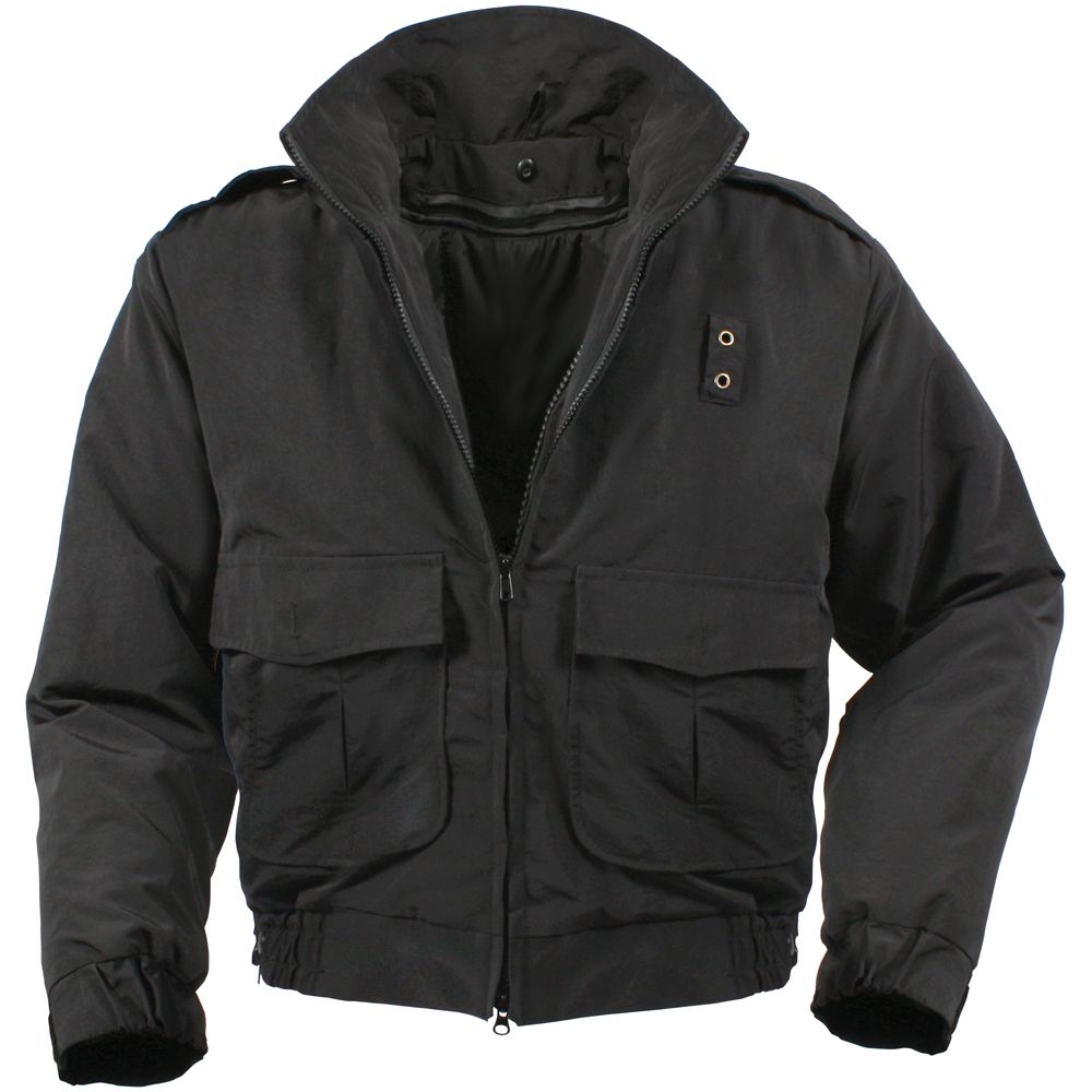 Water repellent duty black jacket with liner is made out of black nylon through epaulets. It comprises of nylon zip out liner with left side inner pocket. It is water repellent. Also It is a two way zipper. The jacket includes two in one front pockets and top entry through flap hook and loop closure. It comprises of slash side entry. Also it is very soft and light weight and durable jacket comprises of storm collar sips through the top. Some of the features of this jacket includes elastic waistband, side zippers through adjustable tab, elastic cuff with adjustable tab.