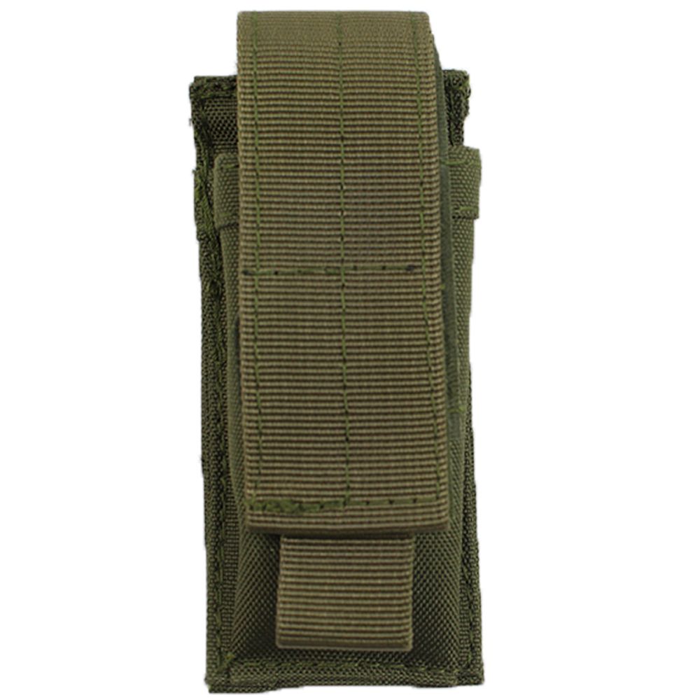 Make sure your ammo is always at the ready with the MOLLE Single Pistol Mag Pouch. Olive drab pouch securely holds a pistol magazine or small tools to keep you prepared on the battlefield. A drainage hole at the bottom of the pouch prevents water damage.