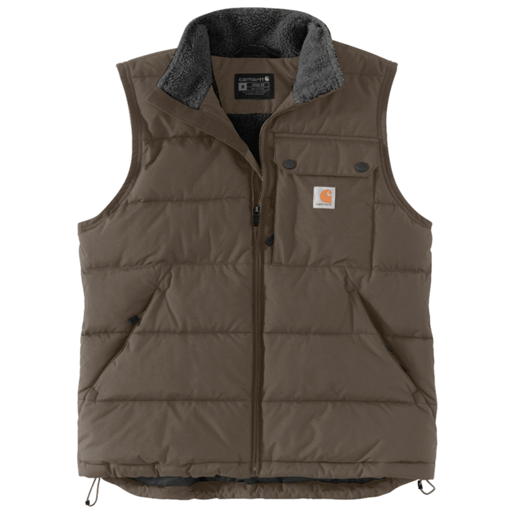 The Montana Loose Fit Insulated Vest is designed to keep your core warm and protected in challenging weather. With a water-repellent finish and wind-resistant construction, this vest offers lightweight insulation and a cozy sherpa fleece lining for enhanced comfort. Multiple pockets provide versatile storage options, making it a practical choice for work or outdoor activities.