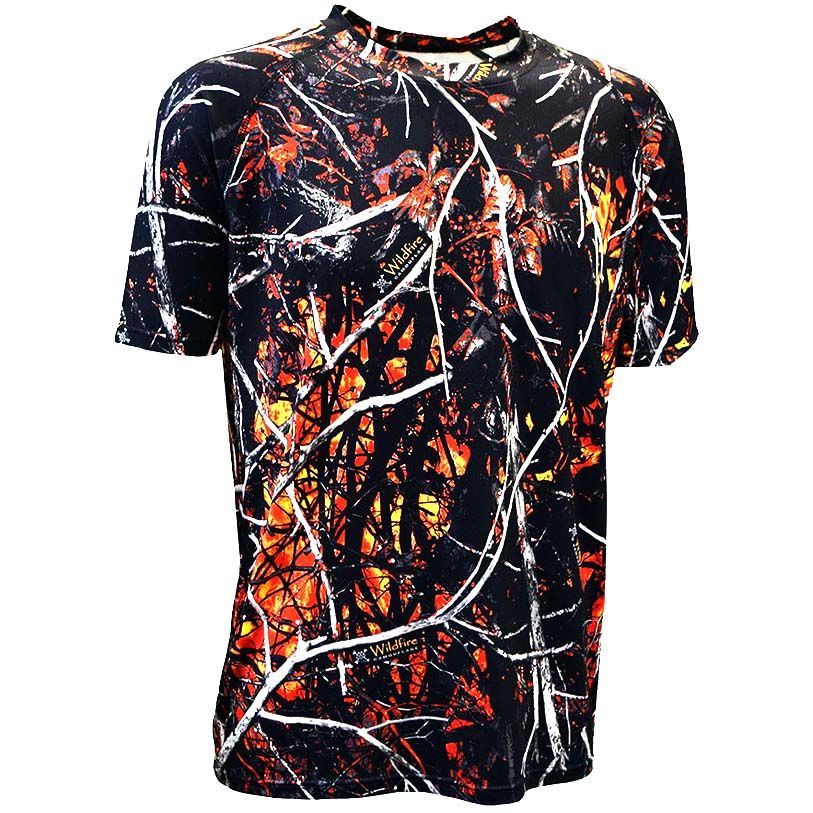 Looking for a t-shirt to wear with little to no thought? Moon Shine Camo has done all the thinking for you. Wear the Wildfire Camo Enviroflex Tee to the gym. Wear it to the beach. Pull it on when jogging, hiking or going on a date. The incredibly deep contrasting colours of durable Enviroflex reinforced print will keep you in the spotlight wherever you choose to wear it. The soft and lightweight fabric is pleasant to the skin. Extra movement is enabled by a loose cut and comfortable raglan sleeves.