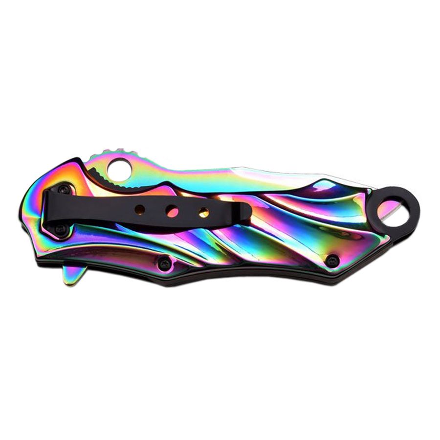 3.75" 3mm Thick Blade, Stainless SteelBlue Titanium Coated Blade5" ClosedBlue Titanium-Coated Stainless Steel HandleIncludes Black Pocket Clip.