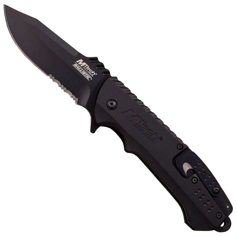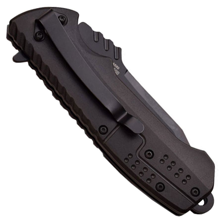 3.25" 3mm Thick Blade, Stainless SteelBlack Half Serrated Edge Blade4.75" ClosedBlack Anodized Aluminum HandleIncludes Rescue Hook and Pocket Clip.