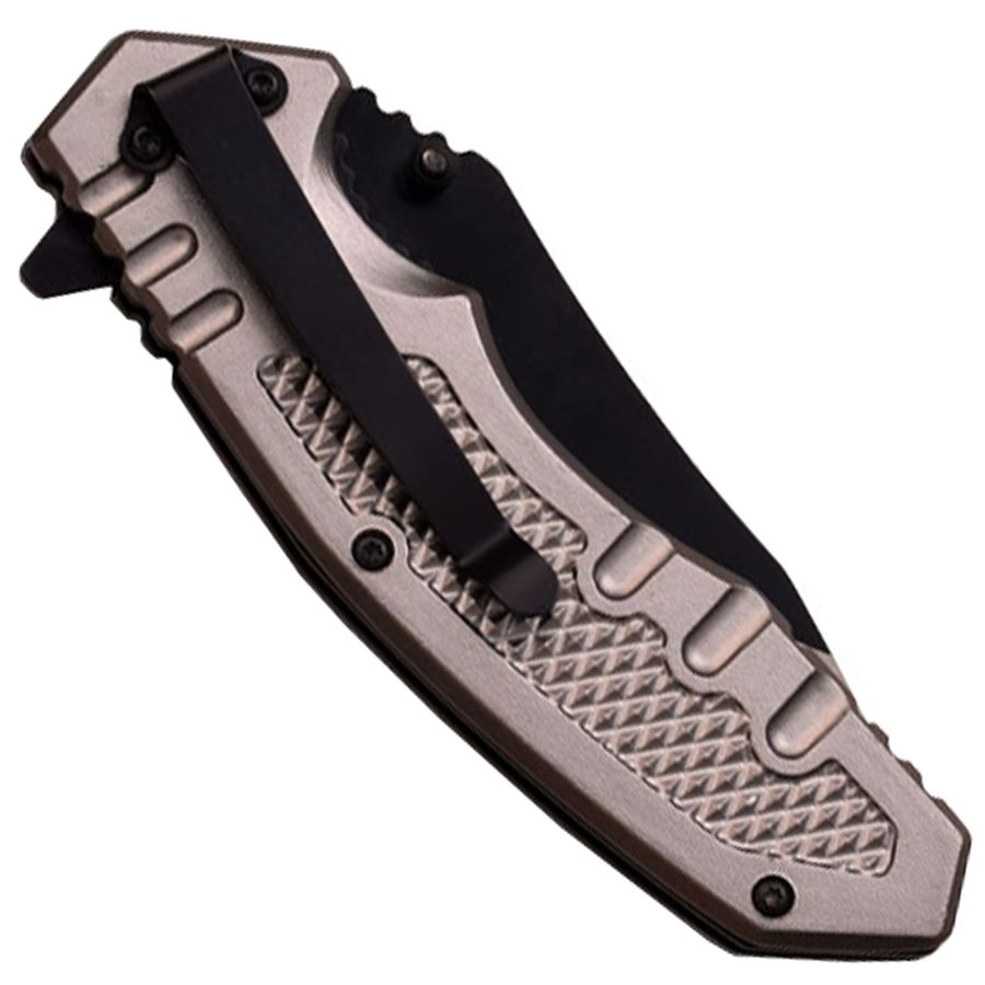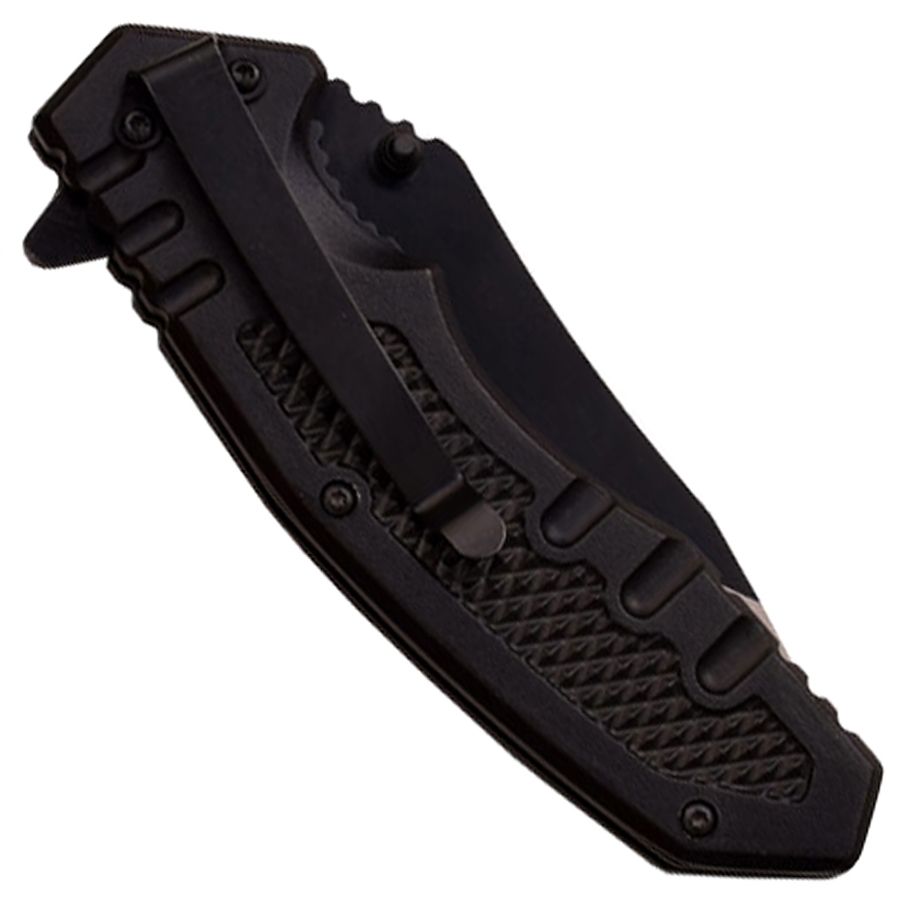 3.5" 2.8mm Thick Blade 2 Tone Satin and Black Plain Tanto Blade 4.75" Closed Solid Black Aluminum Handle Includes Black Pocket Clip.