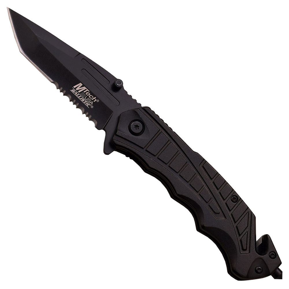 3.5" 2.8mm Thick Blade, Stainless Steel4.5" ClosedBlack Anodized Aluminum HandleIncludes Pocket Clip, Seat Belt Cutter & Glass Breaker.