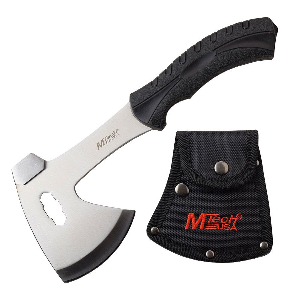 3 inch Axe Fine Edge Blade10" OverallStainless Steel BladeInjection Molded Rubber HandleIncludes Nylon Sheath