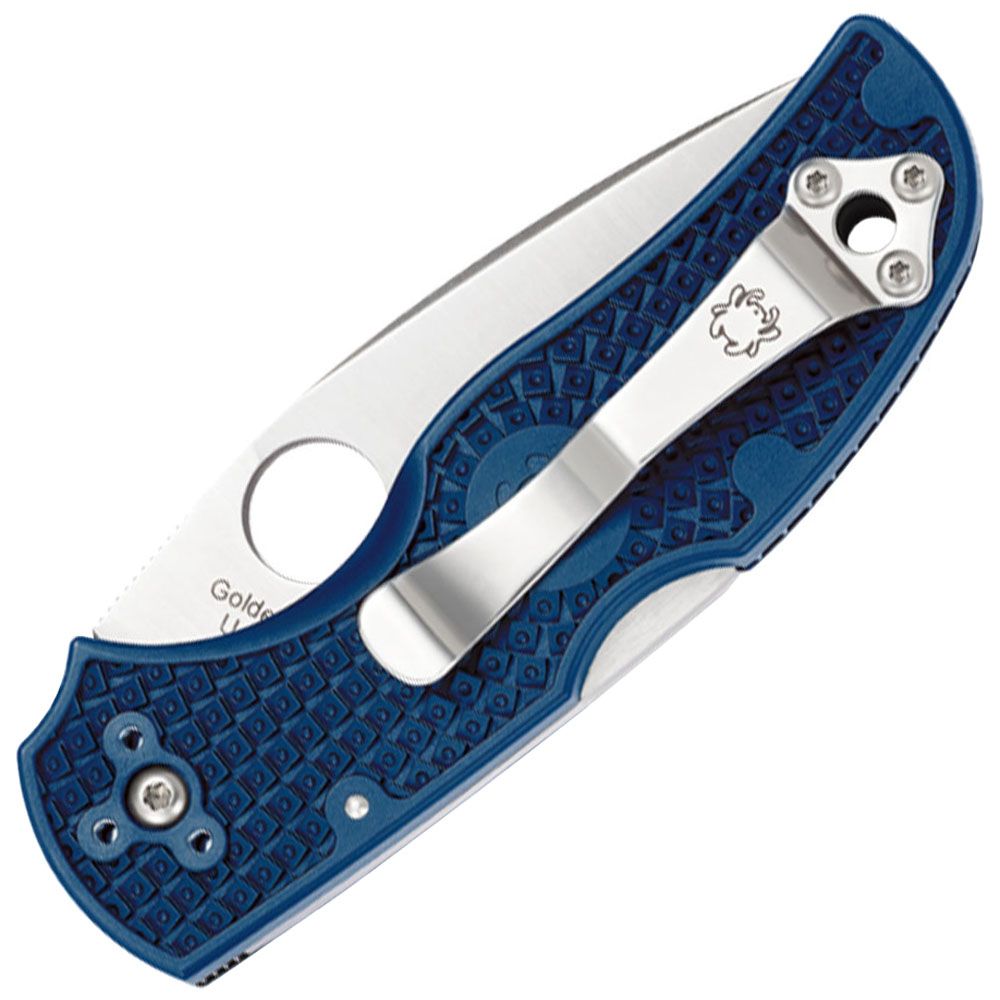 This knife’s full-flat-ground blade is machined from CPM-S30V powder metallurgy stainless steel and has a durable, non-reflective Diamond-Like Carbon (DLC) coating. Its Spyder Edge cutting edge provides extreme cutting power, especially on fibrous materials. It also includes an index-finger choil for a forward-positioned grip that allows enhanced control during detailed cutting tasks. A highly evolved back lock mechanism—one of the defining features of the Native 5 design—locks the blade securely in the open position and, along with the blade’s Trademark Round Hole, allows ambidextrous one-handed opening and closing of the knife.